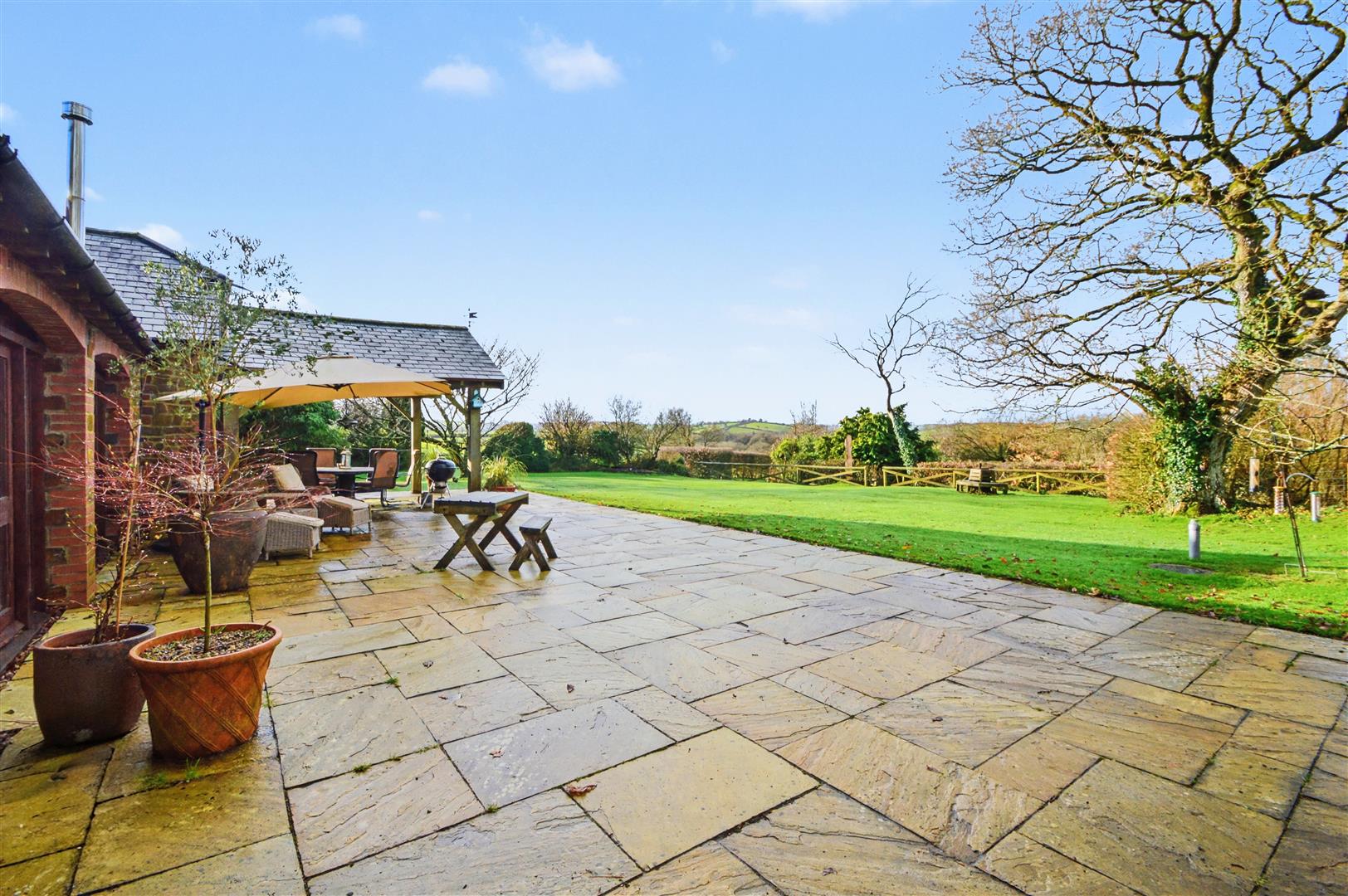 Outside - The Linhay is approached over a long owned and shared lane which leads to a private gated entrance opening to a large parking area at the front of the Linhay and Lodge. There is a level lawned garden at the front of the barn, steps lead down to the rear enclosed lawned garden which is interspersed with specimen trees, shrub beds and a covered patio area outside the bedroom. At the side is a level lawned garden, which has a large, paved patio and a covered seating area which is ideal for alfresco dining and entertaining whilst taking in the far reaching countryside views. The gardens continue to a further lawned area interspersed with a variety of fruit and specimen trees.