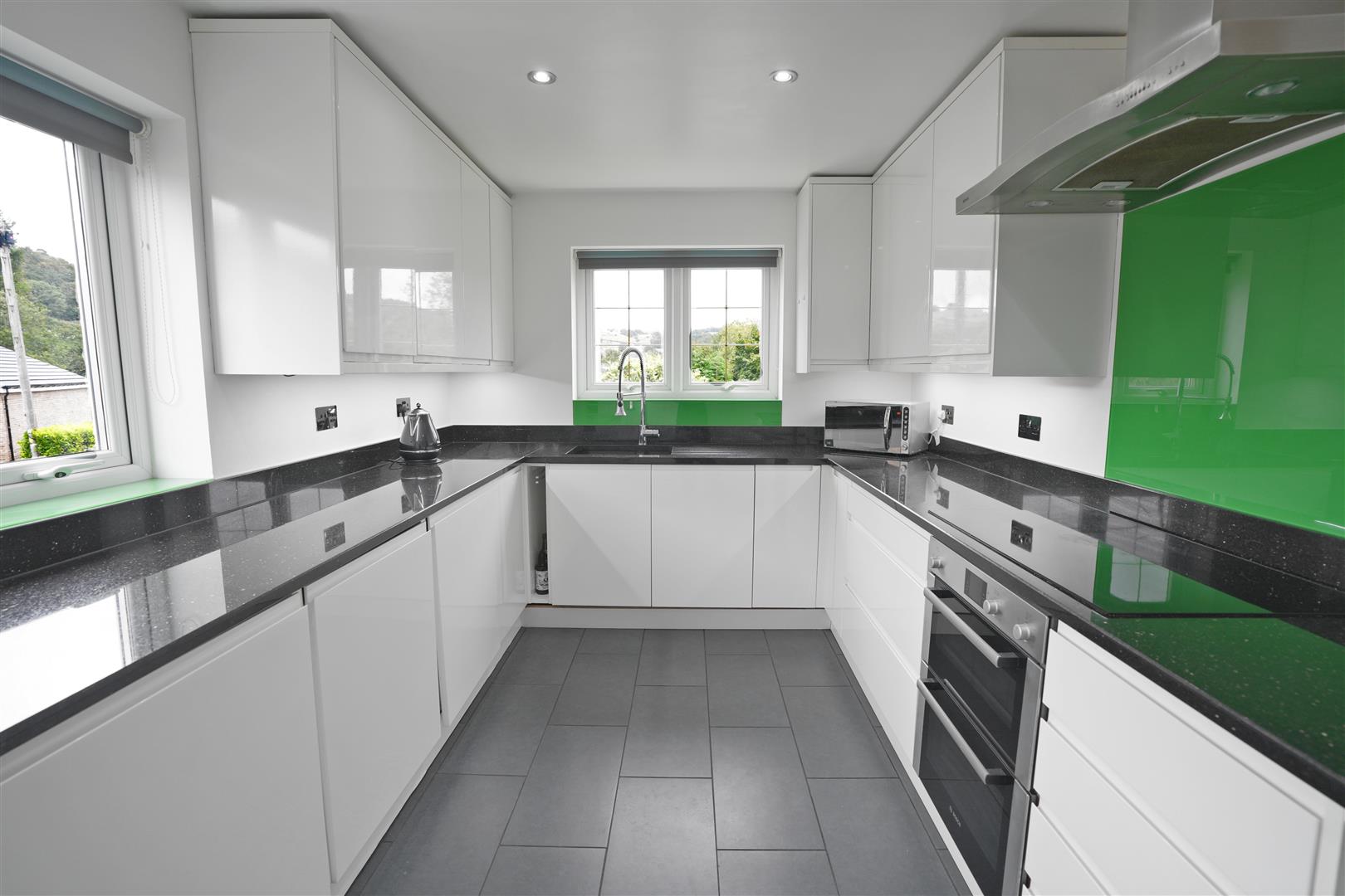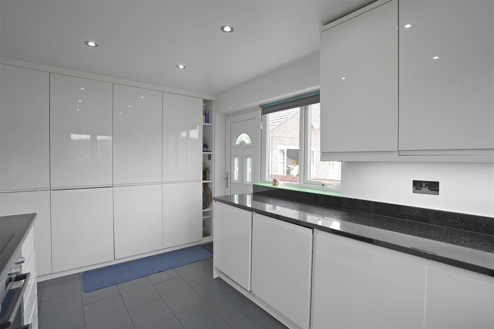 Kitchen - 4.366 x 2.643 (14'3" x 8'8") - A modern fitted kitchen with a range of wall and base units. Undercounter one and half bowl sink. Granite worksurfaces. Electric oven. Induction hob with cooker hood over. Integrated washing machine, dishwasher, fridge, freezer and tumble dryer. Boiler with full service history. Underfloor heating. UPVC double glazed windows to side and front elevation. UPVC double glazed front door.