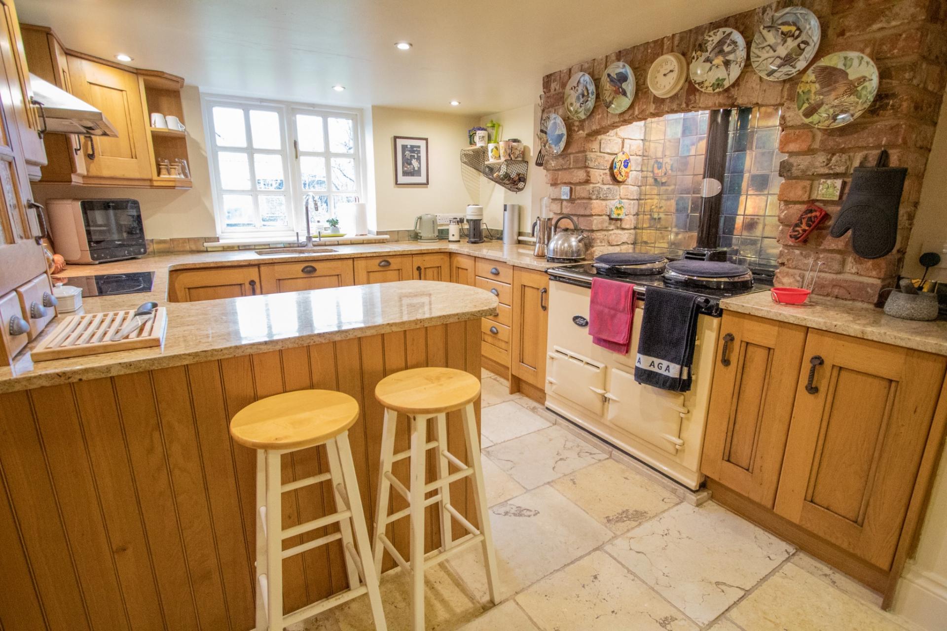 The accommodation, which offers some lovely features, comprises; A lounge with feature fireplace, wood burner and oak flooring, dining room with feature ornamental fireplace and oak flooring. There is a stunning open-plan kitchen/dining room, the kitchen is fitted with a range of wall and base units, granite worktop surfaces, built in oven and hob with extractor hood over, integrated dishwasher, feature exposed brick walling housing the oil fired aga, this opens into the family room. From this room there are French doors into a sun room with doors onto the rear garden. There is also a cloakroom and utility with worktop, space for American style fridge/freezer and stable door onto the rear garden. The kitchen/family room, sun room, utility and cloakroom all have Mandarin Stone flooring. On the first floor there are 4 bedrooms, the master bedroom has exposed timber floors with lovely views over the rear garden and a refitted ensuite, bedroom 2 has an ornamental fireplace and built in cupboard and there are 2 further bedrooms as well as a lovely refitted bathroom suite, comprising a freestanding bath, separate shower cubicle, basin and wc.