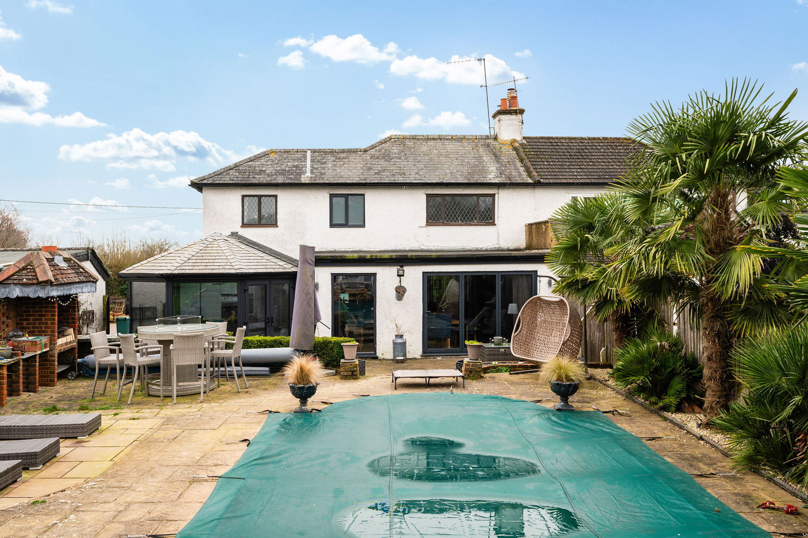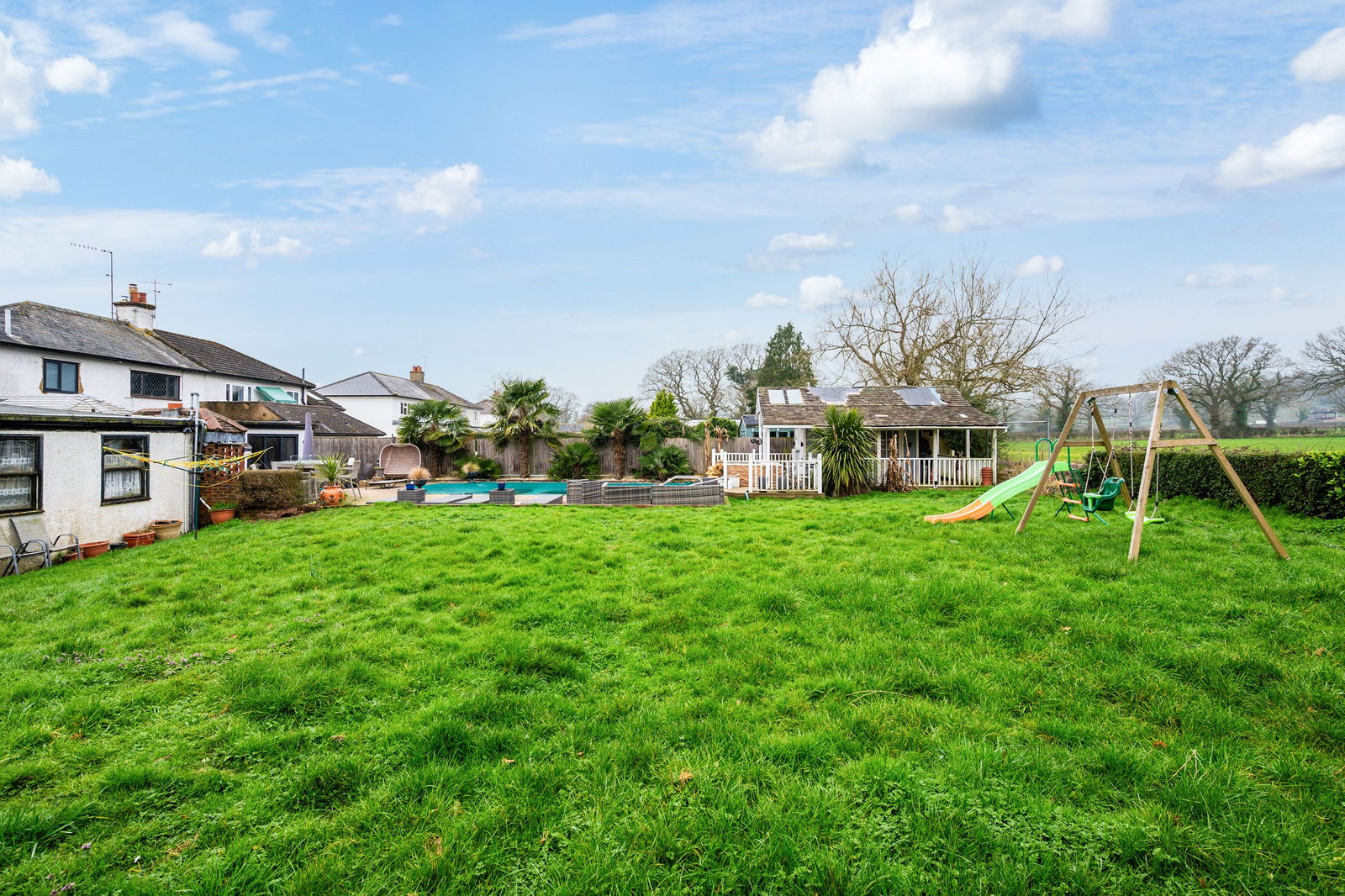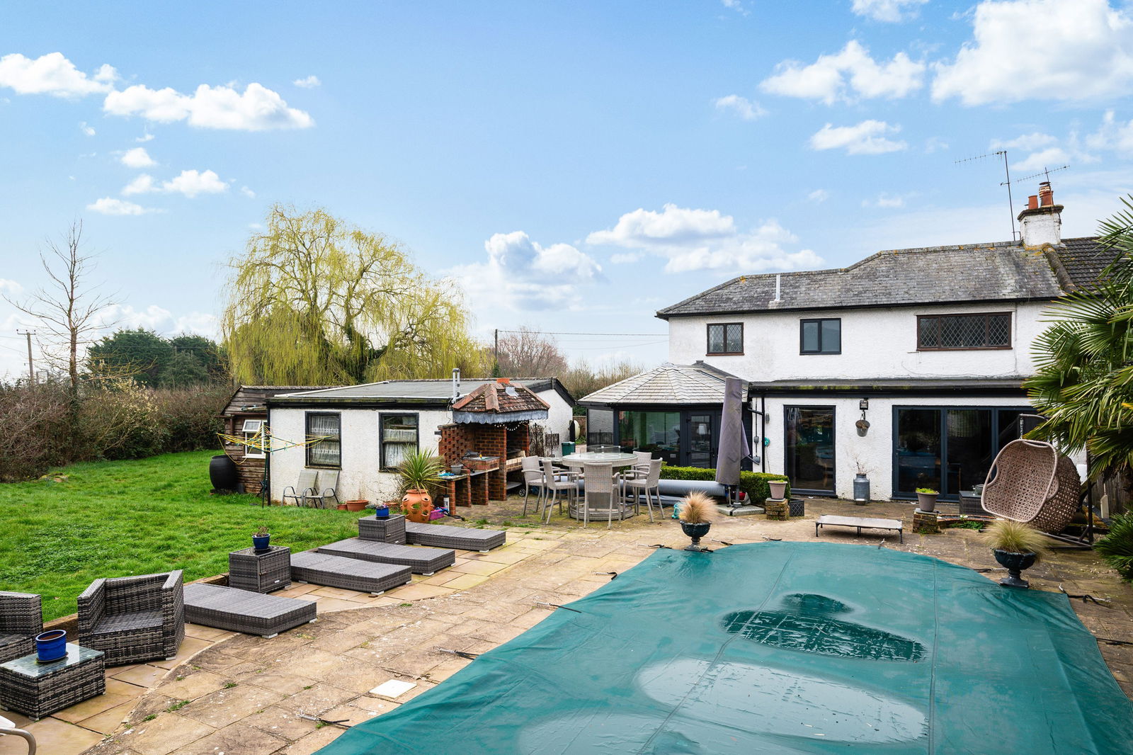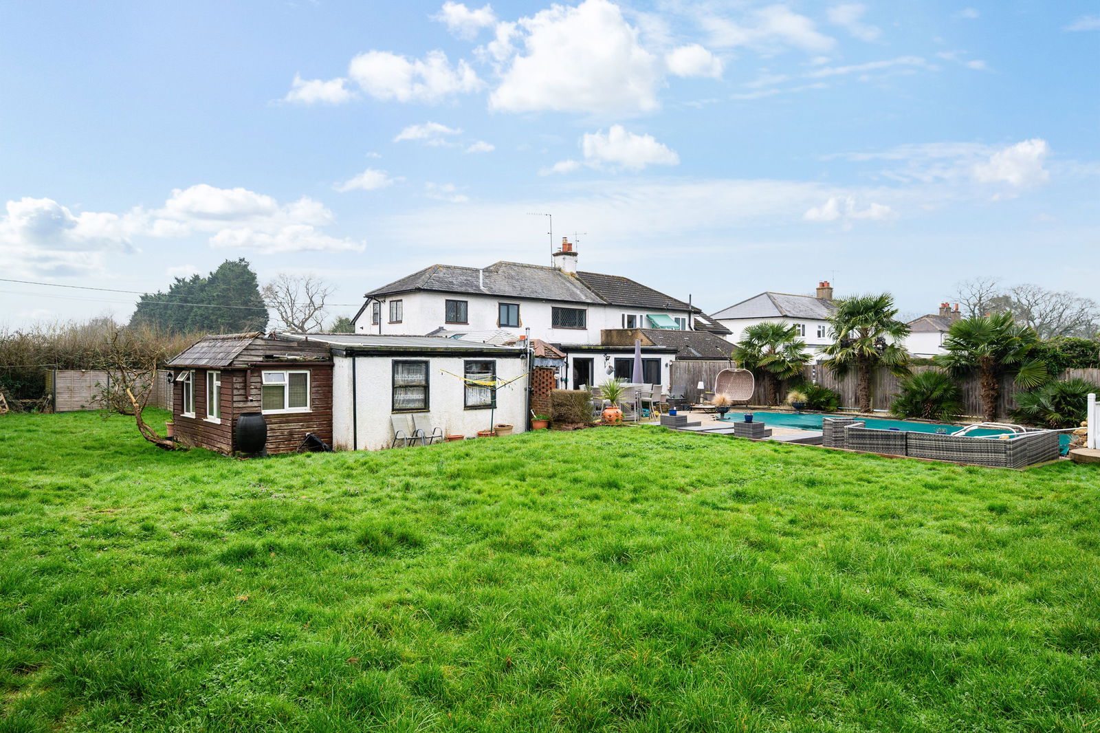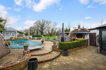 Outside you are greeted by a fabulous swimming pool which has recently been replaced, and a separate hot tub. The pool is heated via an air source heat pump/solar energy, and is all fully automated, controllable via your phone. Changing rooms are also located behind for easy use. The rest of the garden is mainly laid to lawn with a patio area, decking around the summer house, a built in firepit , feature outdoor lighting - perfect for entertaining. The plot extends to almost 1/3 of an acre, with the added benefit of a double garage, wood store and driveway.