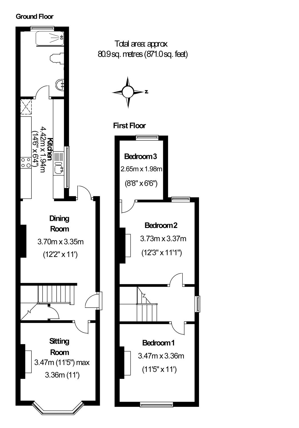 The kitchen is fitted with a comprehensive range of eye and base level units and offers space for all essential appliances. At the very rear of the property is a modern family bathroom with a large walk-in shower, a vanity unit and tasteful fittings. To the front, the sitting room offers an attractive bay window and a fireplace, giving you a calm, separate space to unwind.