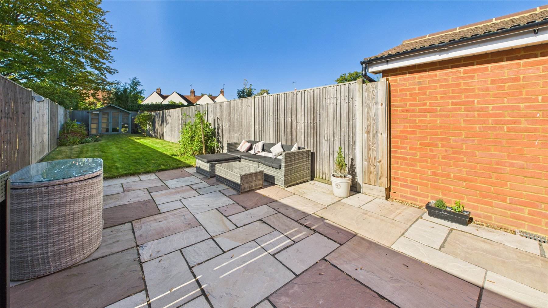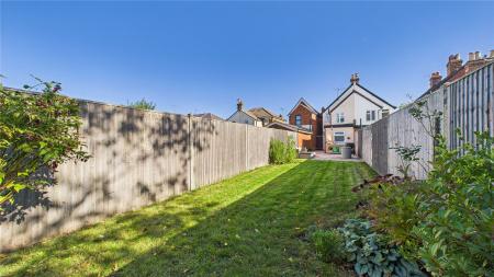 The west facing garden enjoys sun well into the evening and the large patio area provides the perfect setting for al fresco dining, outdoor entertaining, or simply relaxing after a long day. The rear garden is mainly laid to lawn and complemented by well-kept planting and a storage shed, ideal for storing garden equipment.