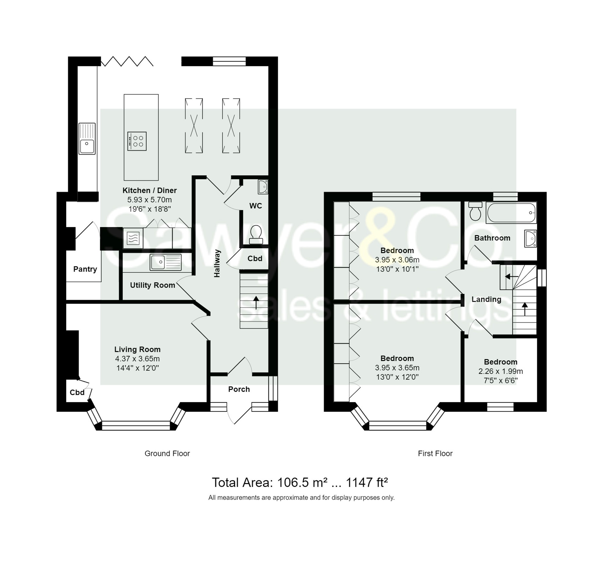 This exceptional family home is finished to a remarkably high standard and offers spacious living throughout. The ground floor boasts a fantastic open plan kitchen/diner with a sleek j-pull design, an island and two Velux windows that flood the room with natural light. Bifold glass doors open out to the rear garden, seamlessly blending indoor and outdoor living spaces. There is a generously sized lounge with a bay window and custom shutters. Additionally, the ground floor has the benefit of a separate pantry, a handy utility room, in-built storage and a W/C.