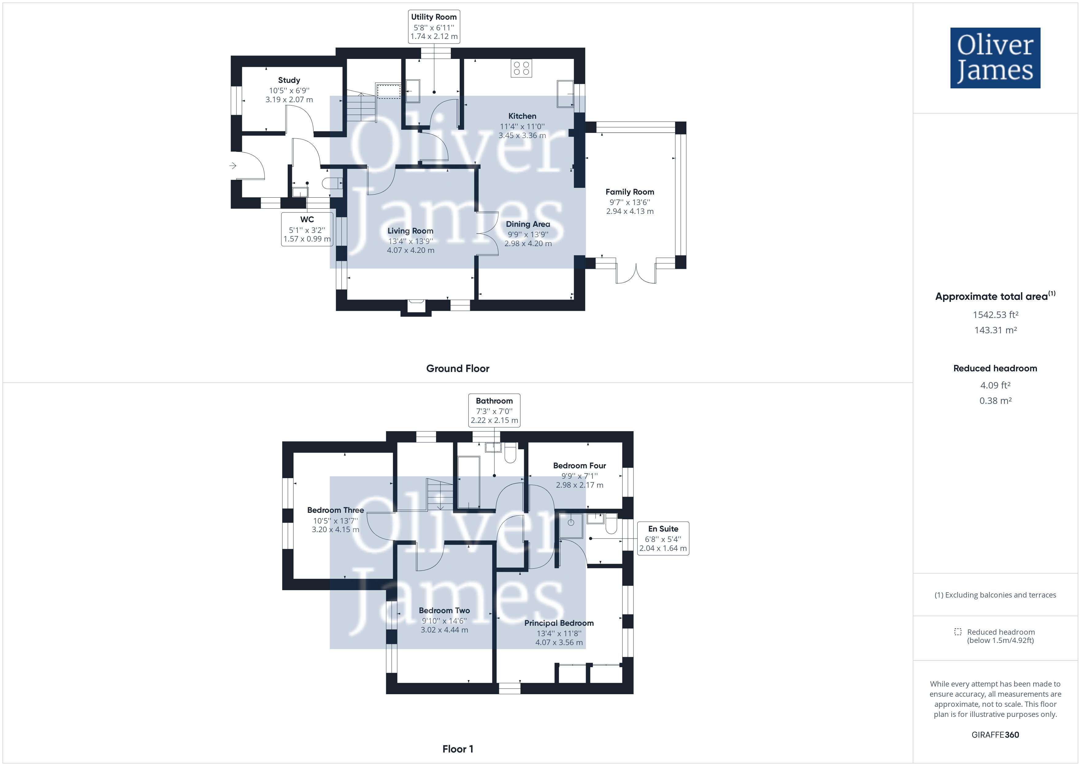 - The Gross Internal Floor Area is approximately 1542 sq/ft / 143 sq/metres.