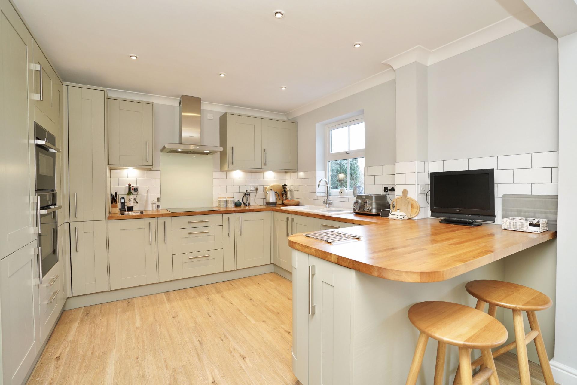 - Lovely refitted kitchen with integrated appliances and solid oak worksurface.