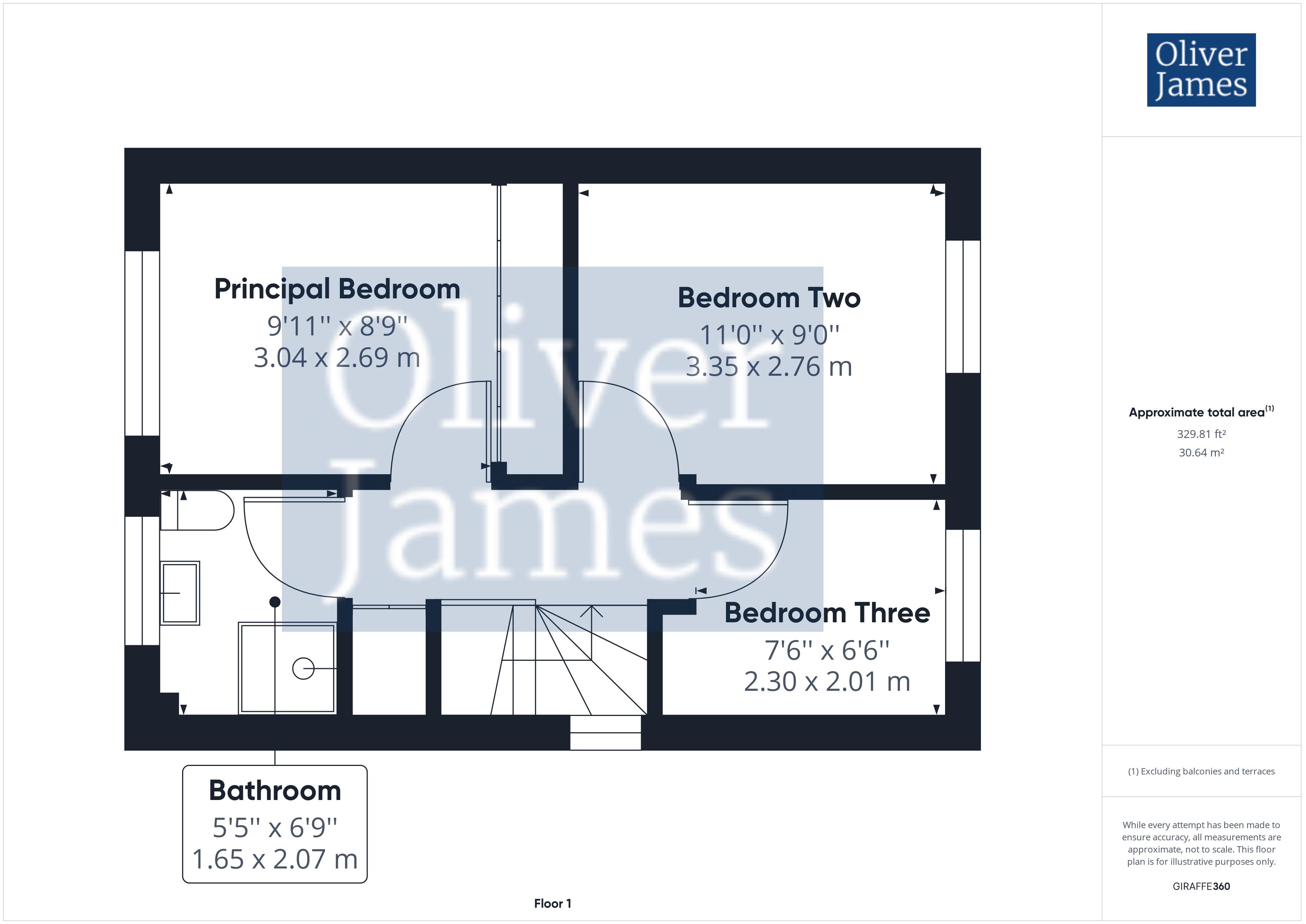 - Three bedrooms.