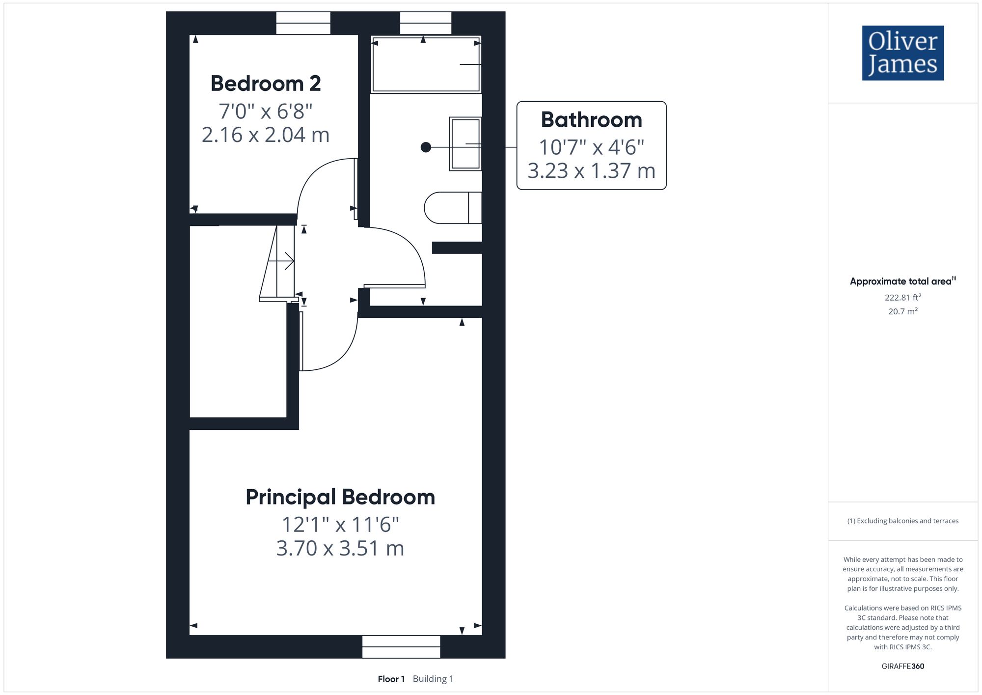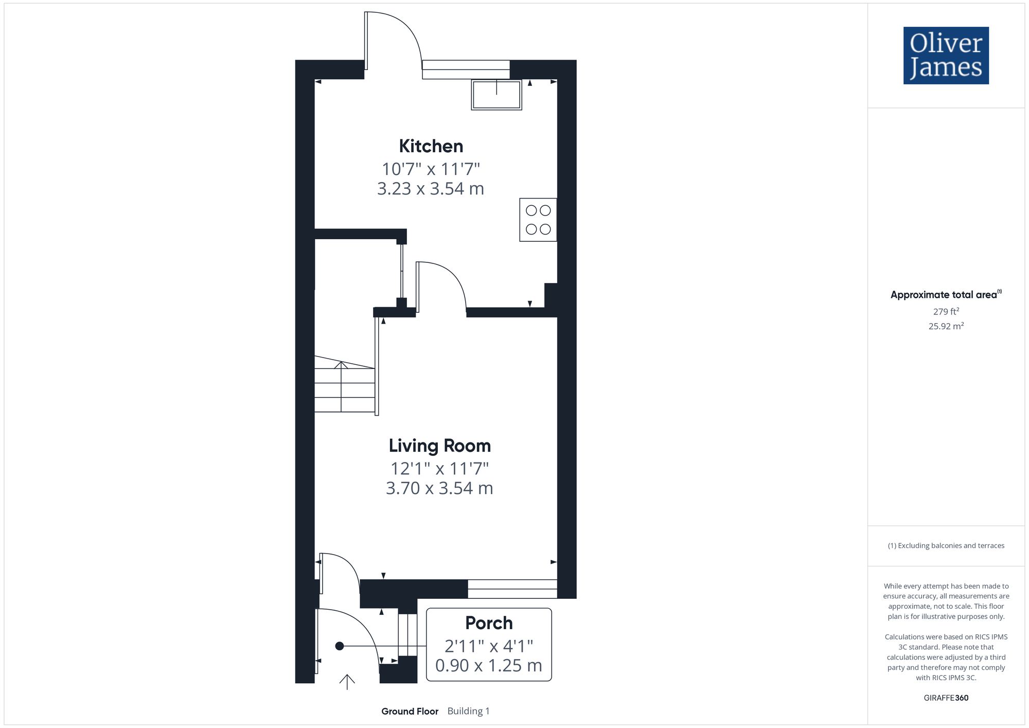 - The Gross Internal Floor Area is approximately 573 sq/ft (53.3 sq/metres)