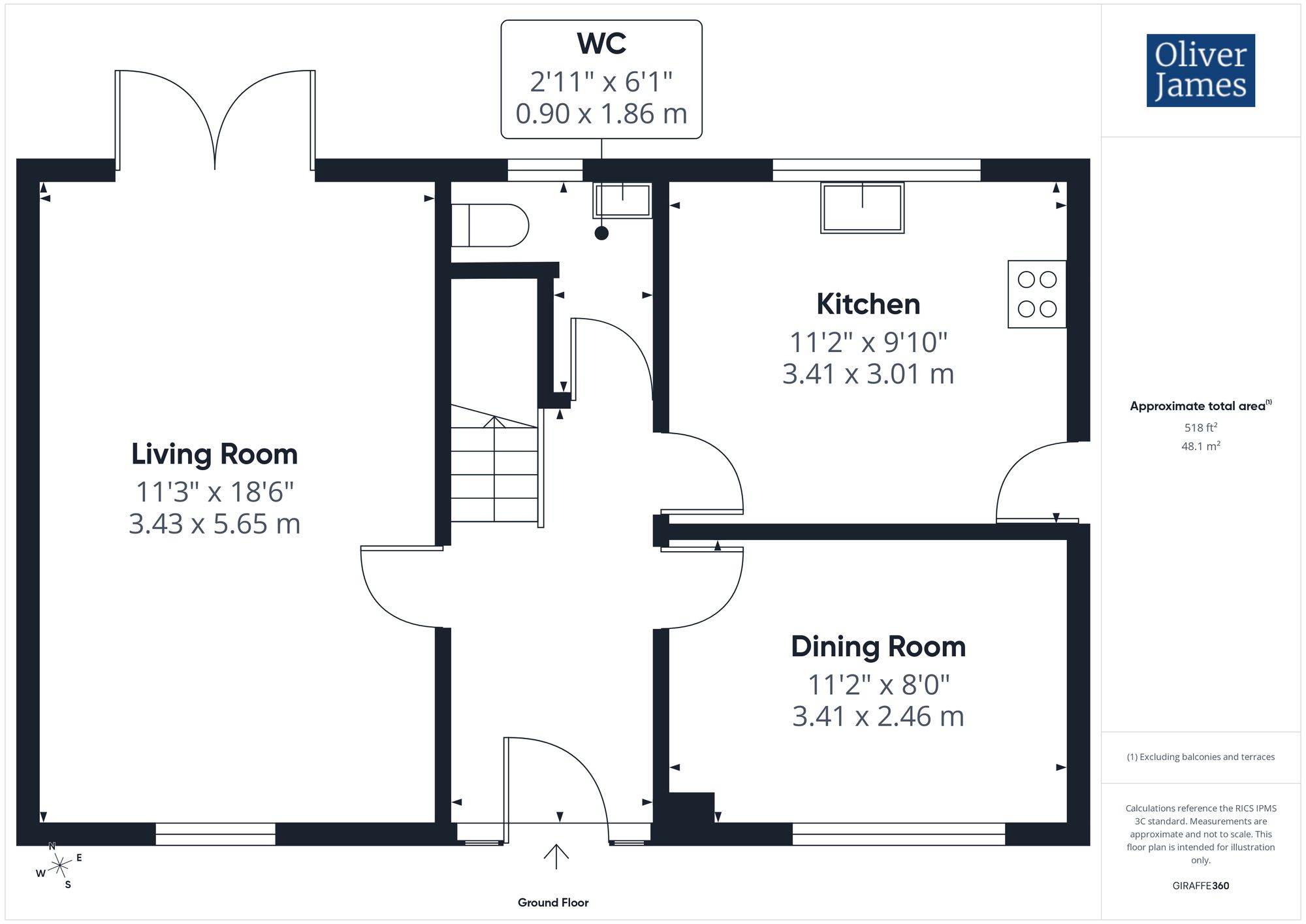 - The Gross Internal Floor Area is approximately 1130 sq.ft / 105 sq.metres.