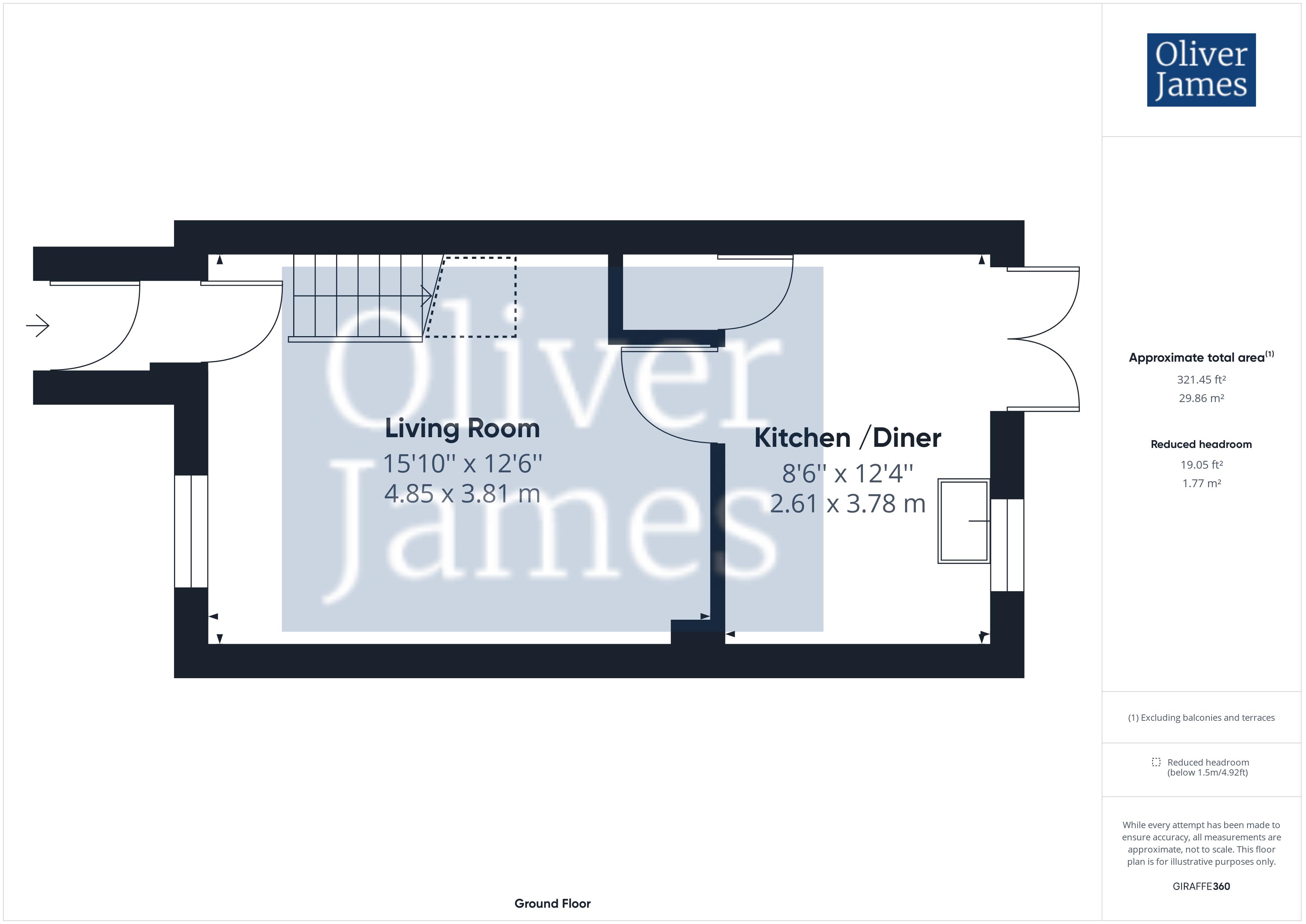 - The Gross Internal Floor Area is approximately 594 sq/ft / 55 sq/metres.