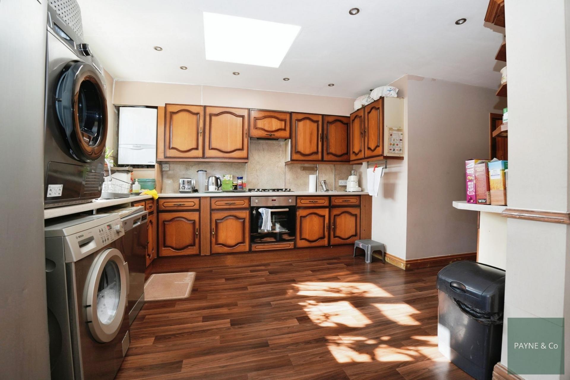 An extended five-bedroom end-of-terrace house in Dagenham arranged over three floors, featuring an open-plan kitchen wit...