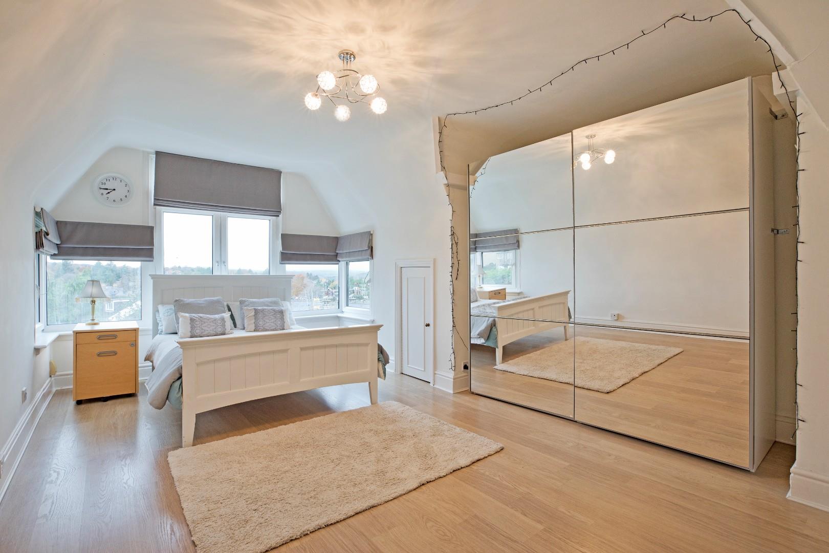 Bedroom Two - 5.72 max x 3.81 max (18'9" max x 12'5" max) - A spacious, double bedroom benefitting from a large bay window affording fabulous views across Ilkley and the countryside beyond. Useful under eaves storage, laminate flooring and radiator. A walk in storage cupboard provides further generous storage.