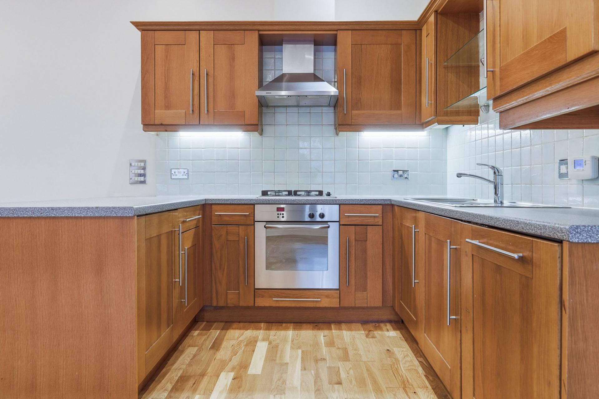 Inside, the apartment is finished to a high standard throughout. The impressive open-plan kitchen/living area features high ceilings, integrated appliances and excellent natural light. There are two bedrooms, both with fitted wardrobes, along with a useful store cupboard and a modern bathroom suite.