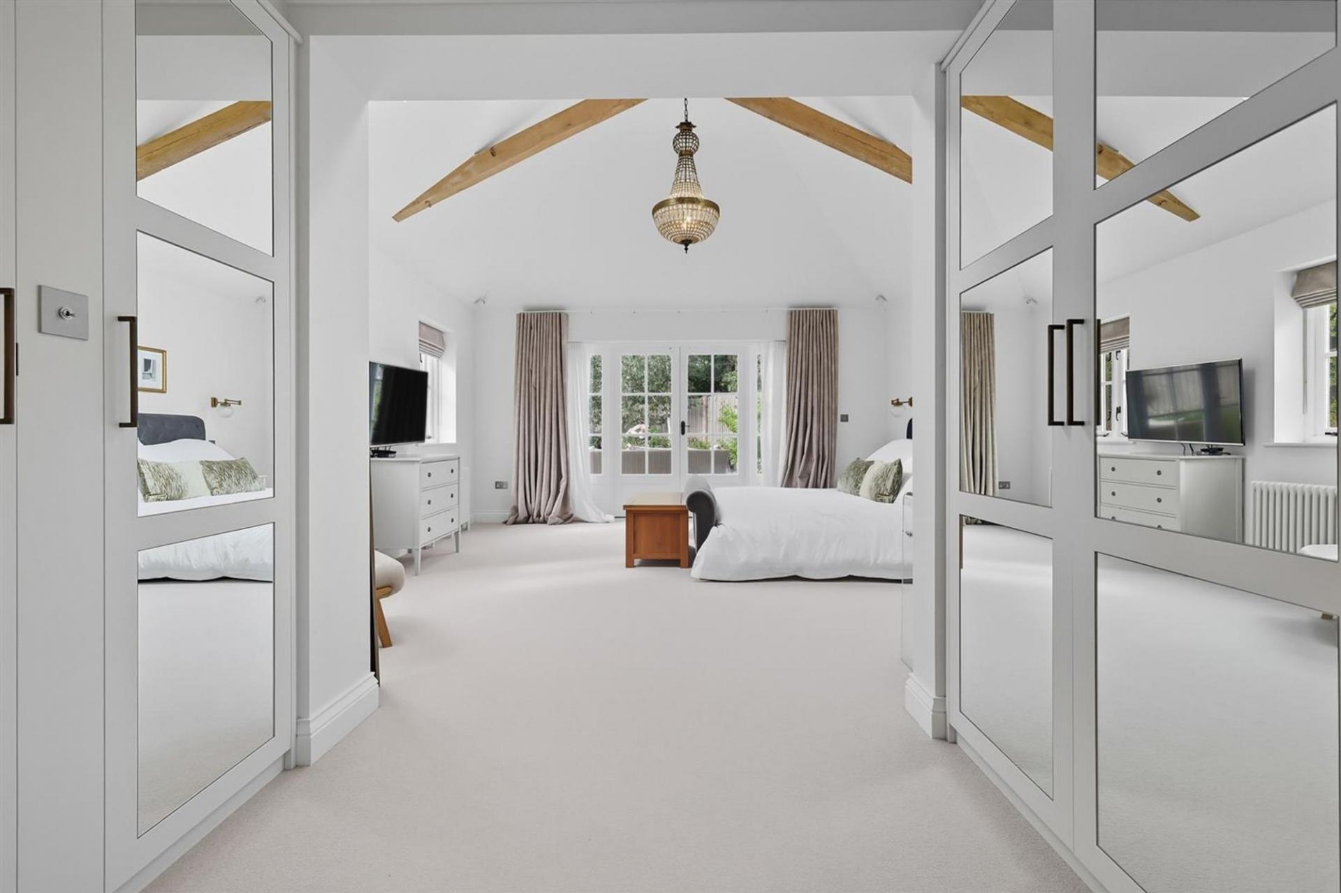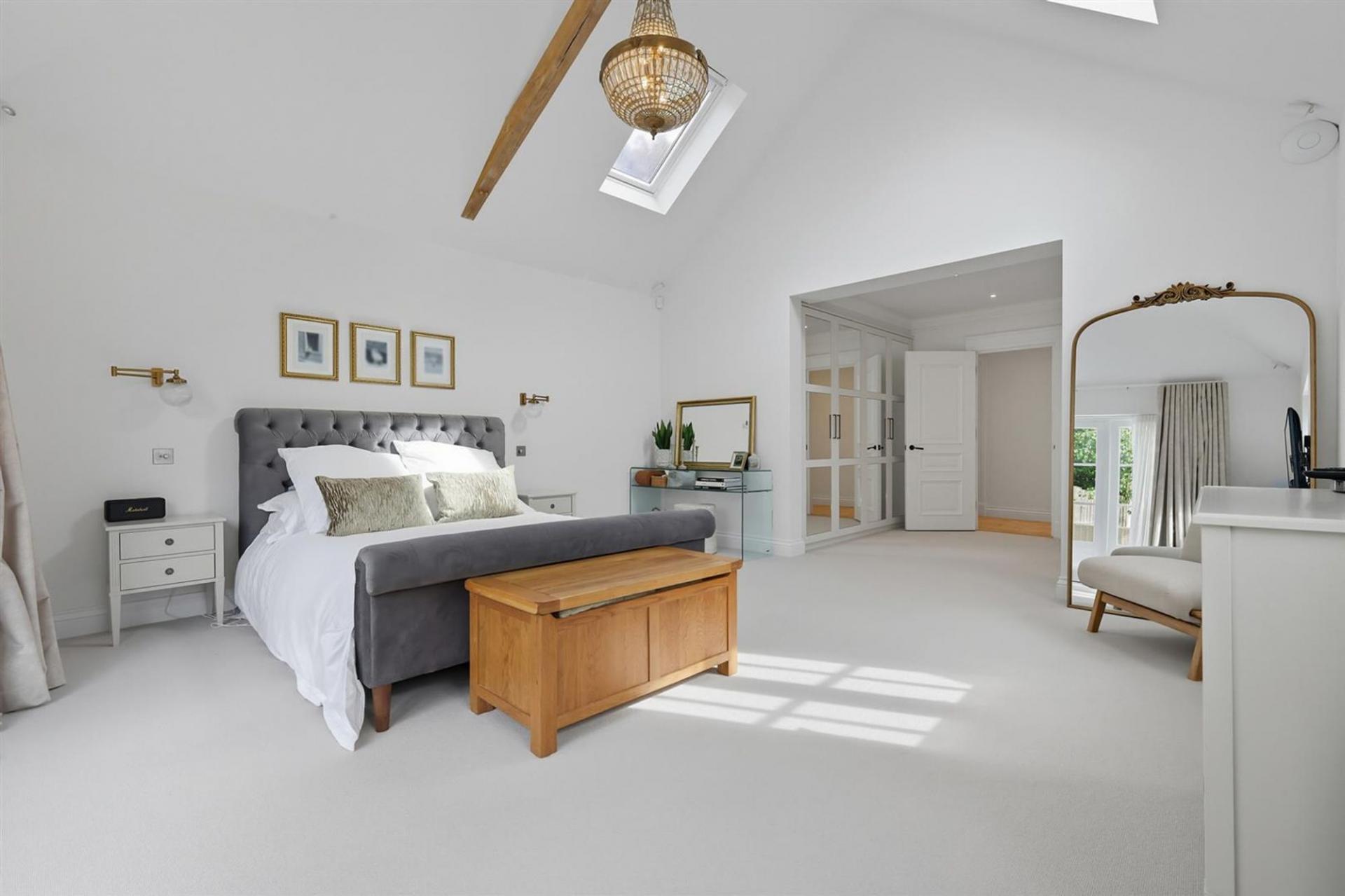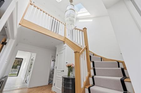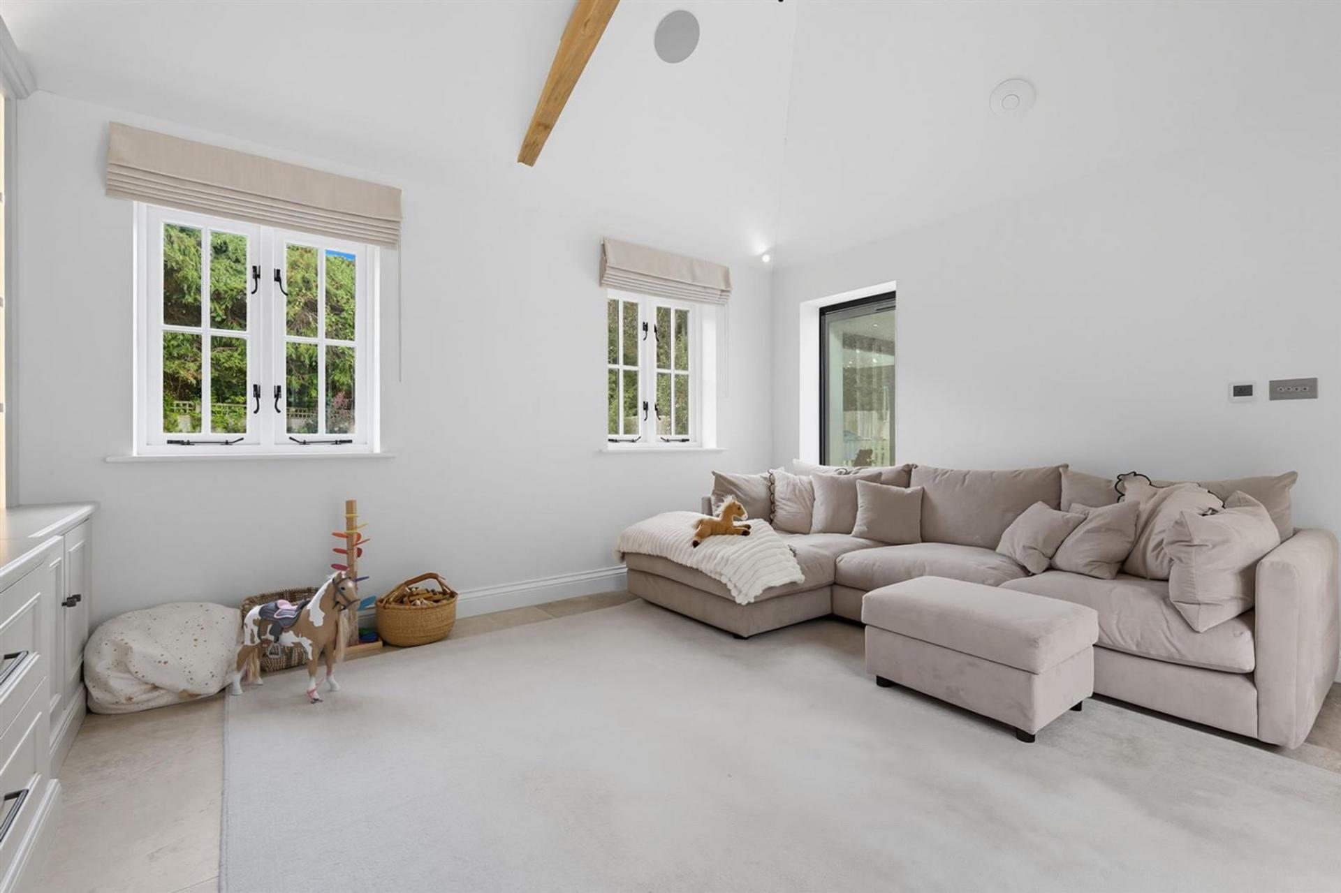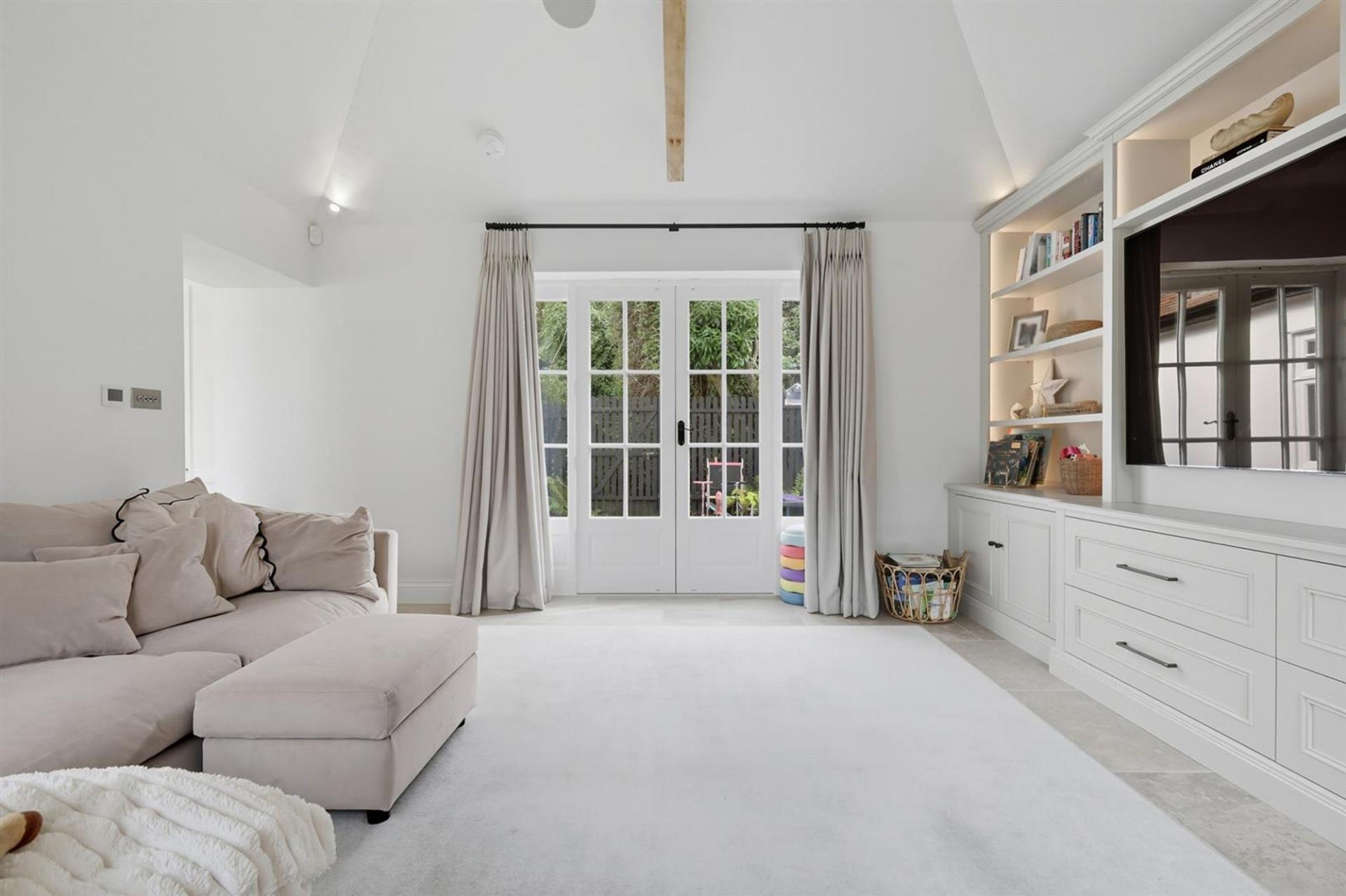 Moments from Ingatestone village, yet surrounded by picturesque countryside and footpaths leading to local favourites such as The Cricketers and The Viper, the location perfectly balances village life with privacy and convenience. Inside, natural light floods the space through an abundance of glass and solar-powered Velux windows, complemented by vaulted ceilings in the entrance hall, snug, and principal bedroom suite. A striking architectural kitchen extension contrasts elegantly with the home’s traditional exterior, whilst features include bespoke cabinetry by Davenport, floor to ceiling aluminium sliding doors, and Lusso Stone fittings throughout the bathrooms, including stone baths and sinks.