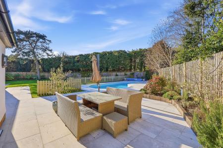 Externally, the appeal continues with a newly restored swimming pool and outdoor shower, all framed by limestone terraces that flow seamlessly from the kitchen. An electric entrance gate opens onto a large driveway framed by granite setts, and professional landscaping wraps around the entire property. The rear garden is also beautifully lit for evening entertaining.