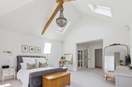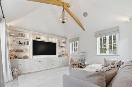 Attention to detail is exceptional, from the handmade clay roof tiles and bespoke timber windows by Trustwood, to custom joinery by Michael Bysouth across the utility, snug, and storage areas. The house also benefits from underfloor heating, Italian designer radiators, Bose ceiling speakers, and full smart security with cameras and alarm system. The master suite is a particular highlight, with vaulted ceilings, a secret door to its en-suite, bespoke wardrobes, and a plumbed air-conditioning system ready for installation.