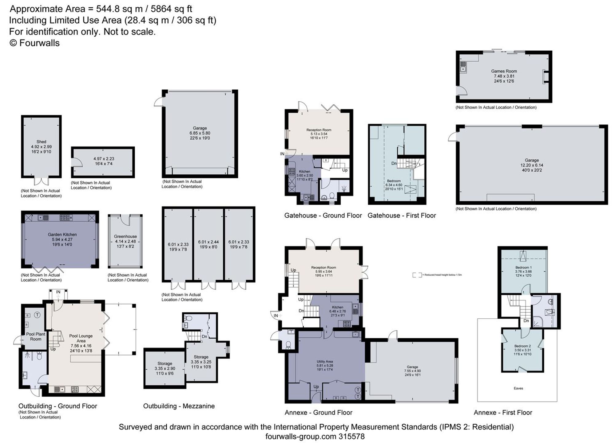 The landscaped gardens have been professionally crafted, featuring a picturesque terrace highlighted by ornamental ponds, winding pathways, and lush mature planting. The formal gardens benefit from an automatic rainwater irrigation system and are enhanced by a designer Hunza lighting system, creating seamless illumination. Adjacent to the pool, a Riviera cedar hot tub provides a relaxing setting with scenic views of the many and varied statues and sculptures (available by separate negotiation). A woodland walk, helipad, and Alitex greenhouse all add to the appeal of the gardens, with functional areas including a gardener's workspace complete with a hut, storage facilities, WC, and a detached games room boasting a veranda, woodburner, sink, and tea-making amenities.