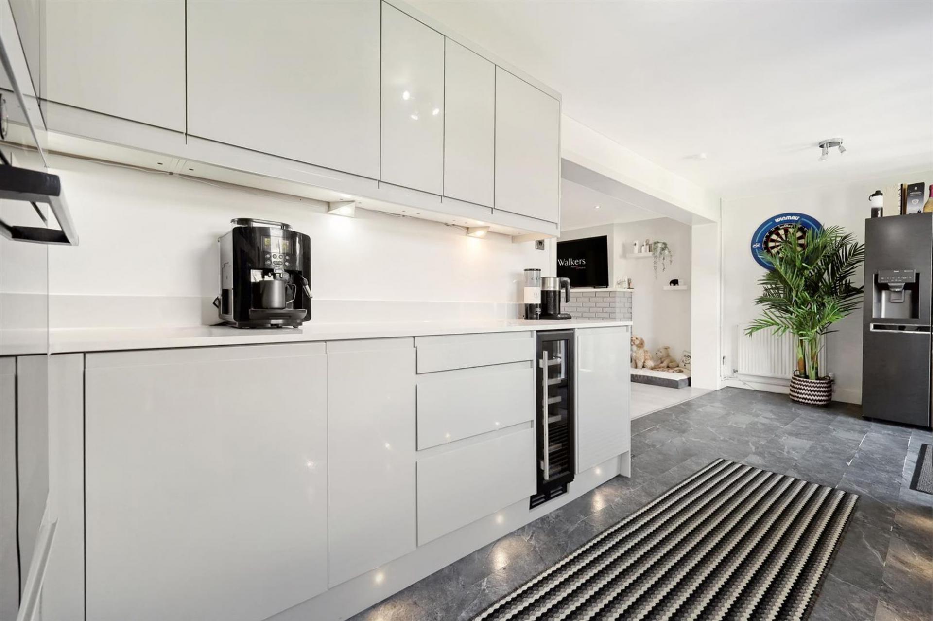 Positioned at the front of the property are the three well proportioned bedrooms, with a feature bay window to the principal. These are all served by the tastefully appointed family shower room. The rear of the property has been extended (single story) to provide a large open plan kitchen/dining area/lounge with open fireplace and sliding patio doors leading out to the rear garden. The kitchen comprises a range of above and below counter storage units, ample worktop space and various integrated appliances. There is also a further door providing access to the garden opposite the separate WC.