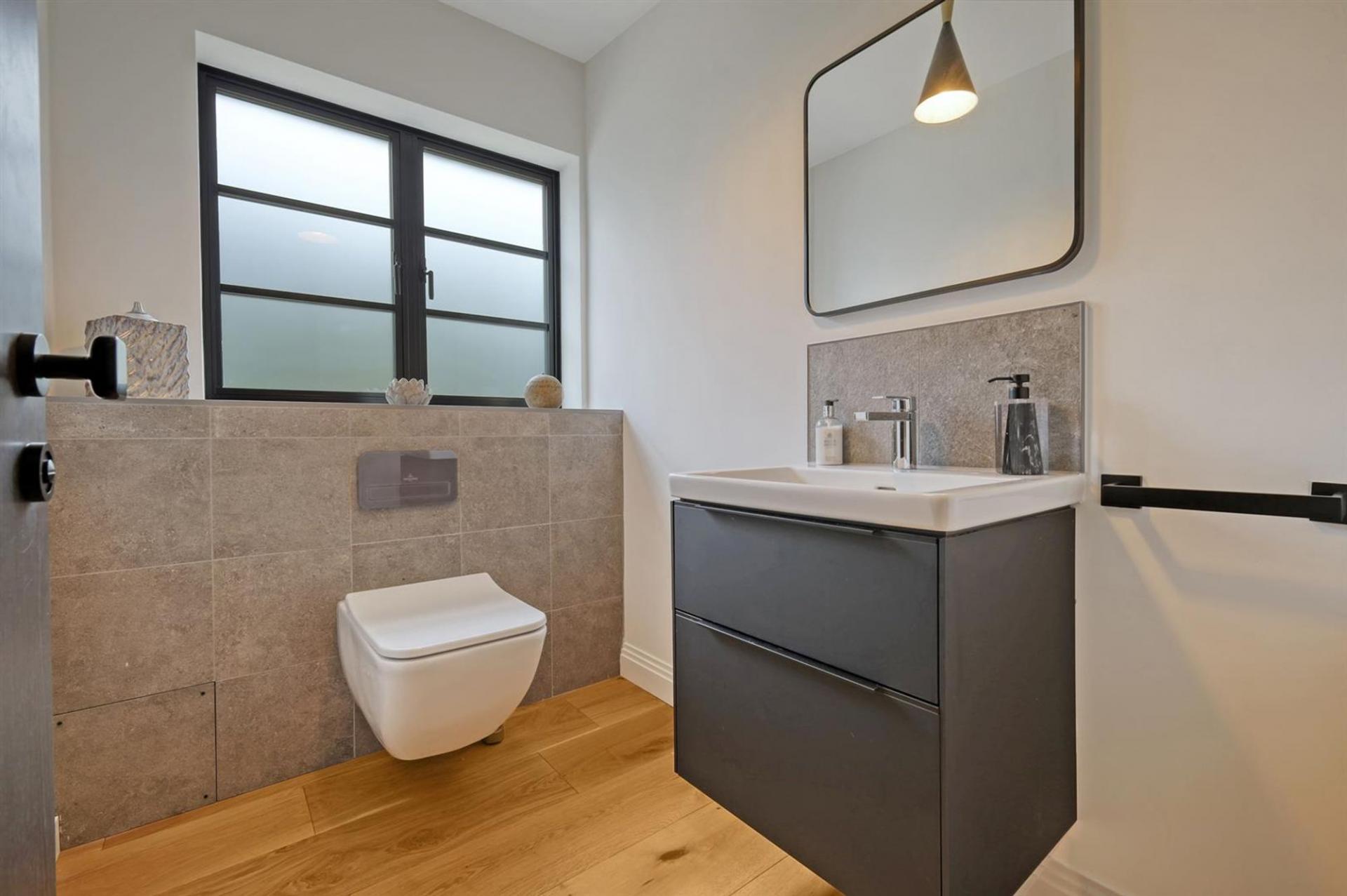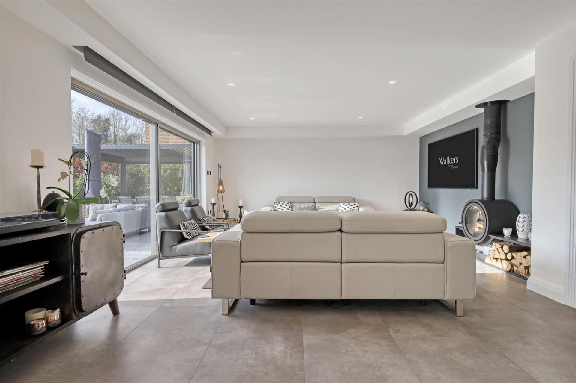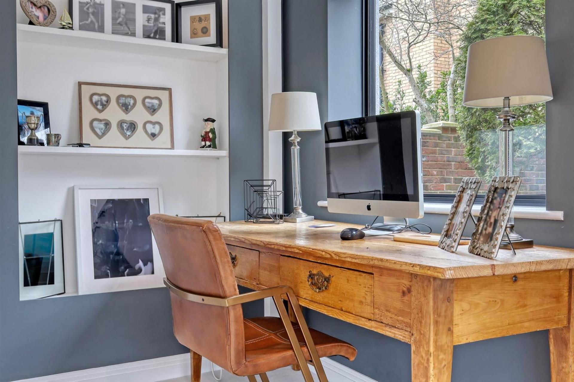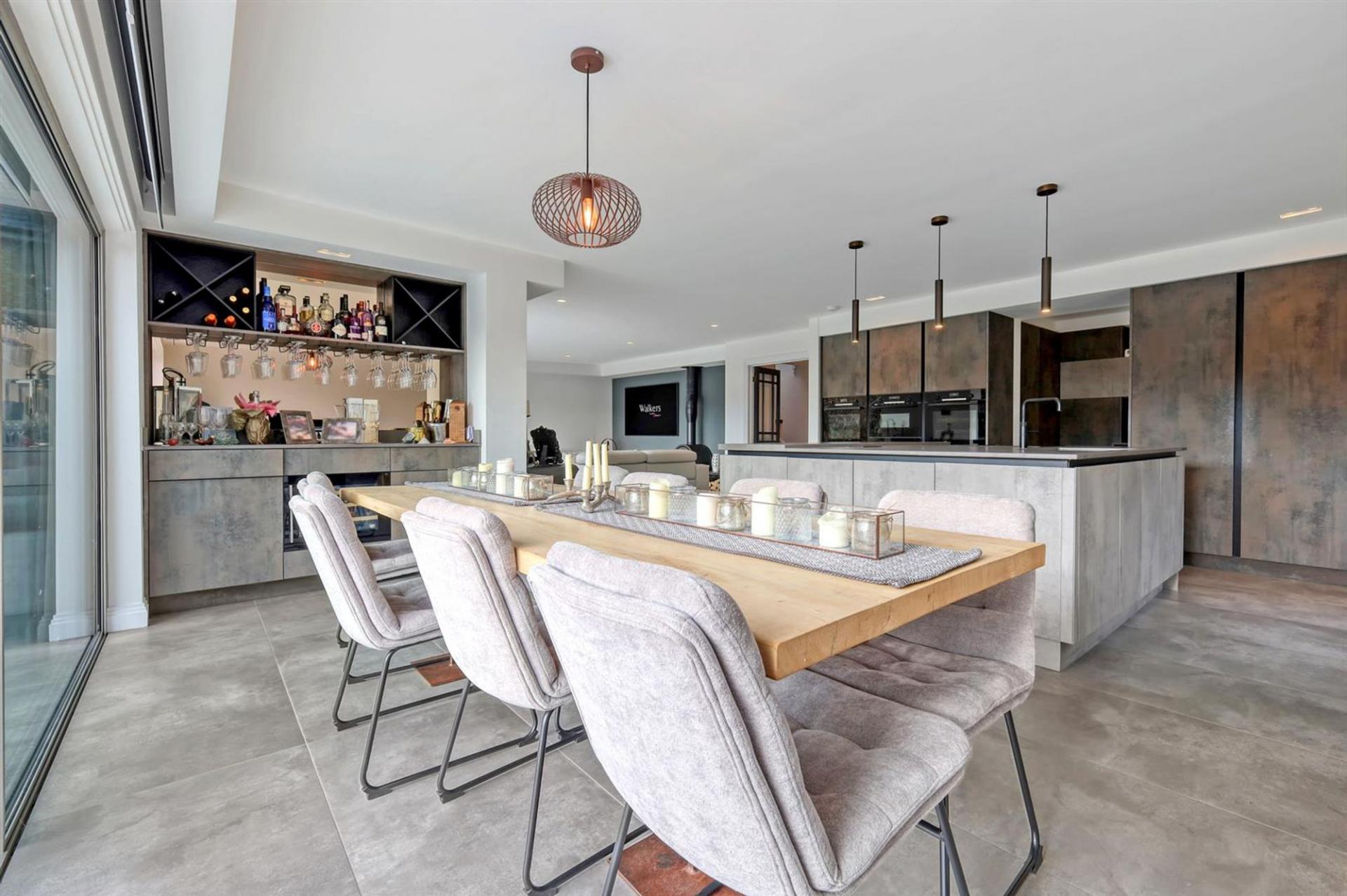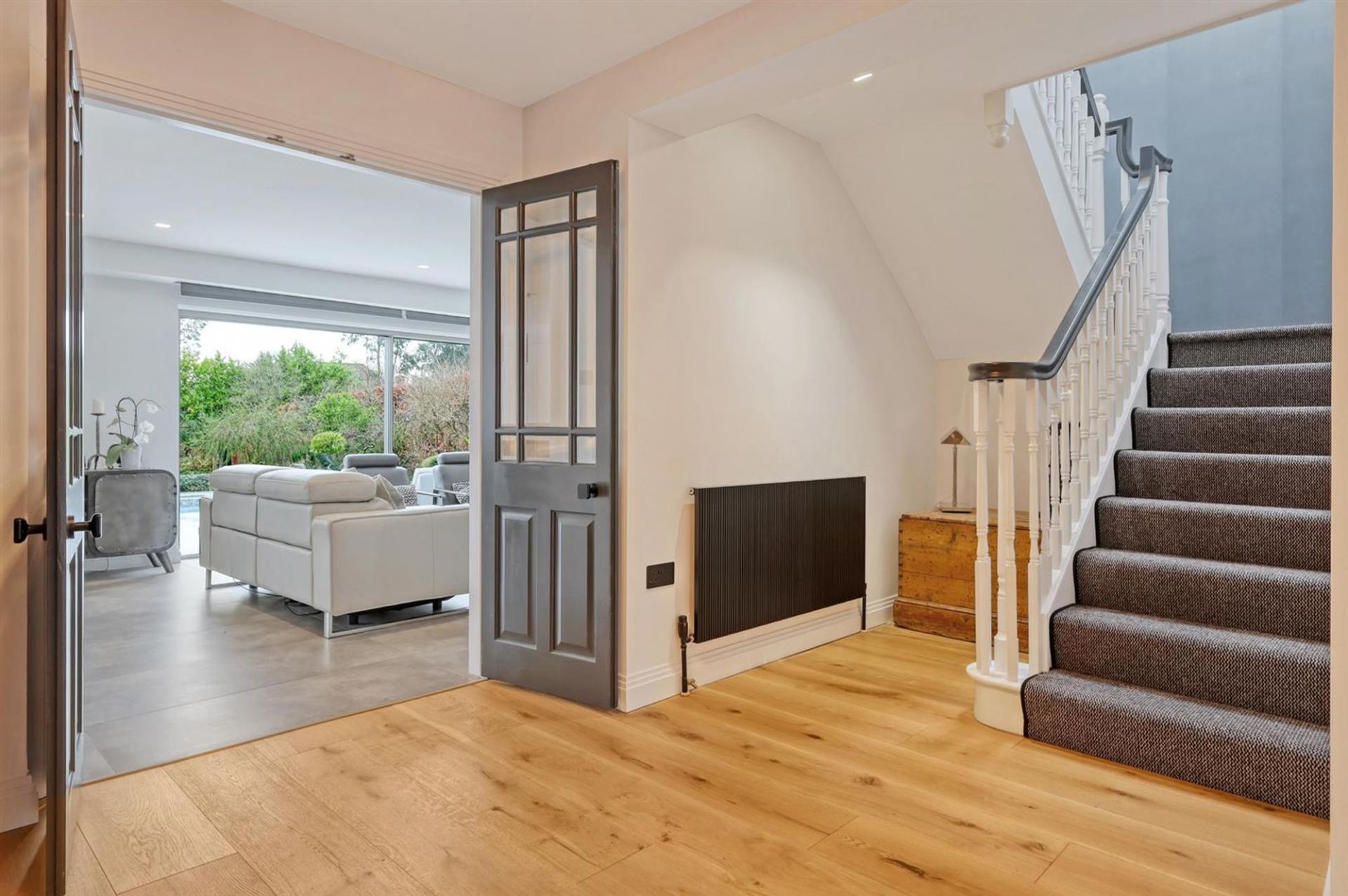 As you step inside, you are welcomed by a spacious and thoughtfully designed layout that caters to modern living. At the heart of the home lies the impressive open-plan kitchen, diner, and family room. The high-spec kitchen features a double oven, microwave, wine cooler with bar, and a central island with an induction hob. Underfloor heating adds a touch of luxury, while two sets of sliding doors seamlessly connect the indoor living space to the stunning garden beyond. A wood-burner in the family area creates an inviting ambiance, perfect for relaxed, cosy evenings. The property also benefits from a convenient utility room, providing ample storage and practicality, alongside a downstairs shower room and a separate guest WC. To the front of the property is a separate, double aspect reception room complete with a square bay window, allowing the room to flood with natural light.
