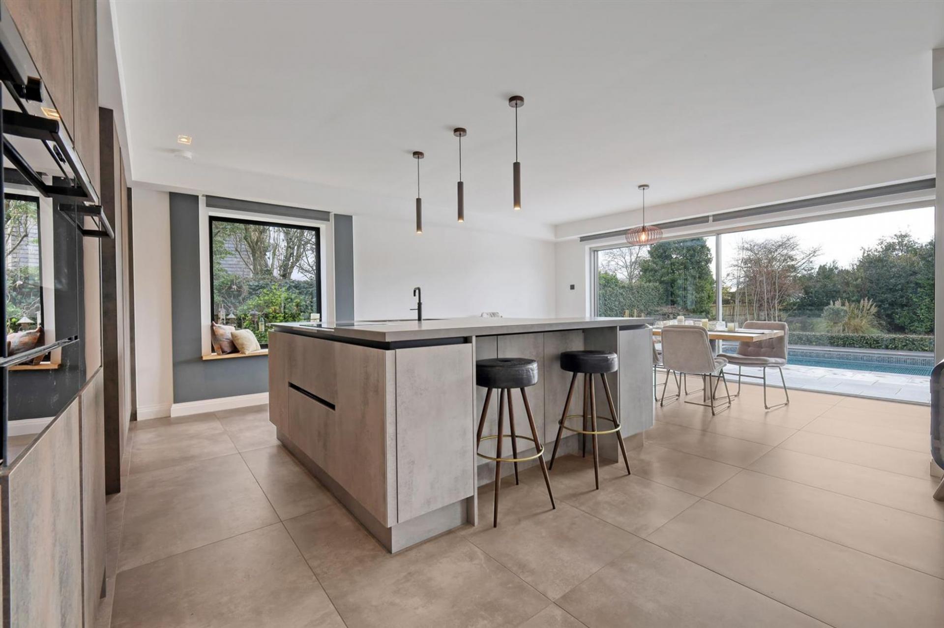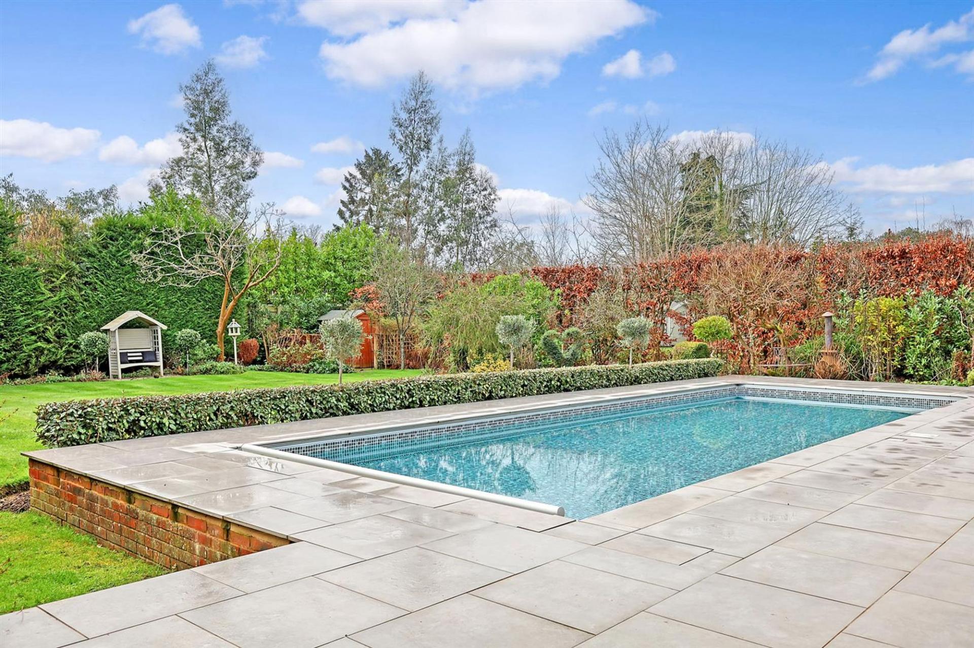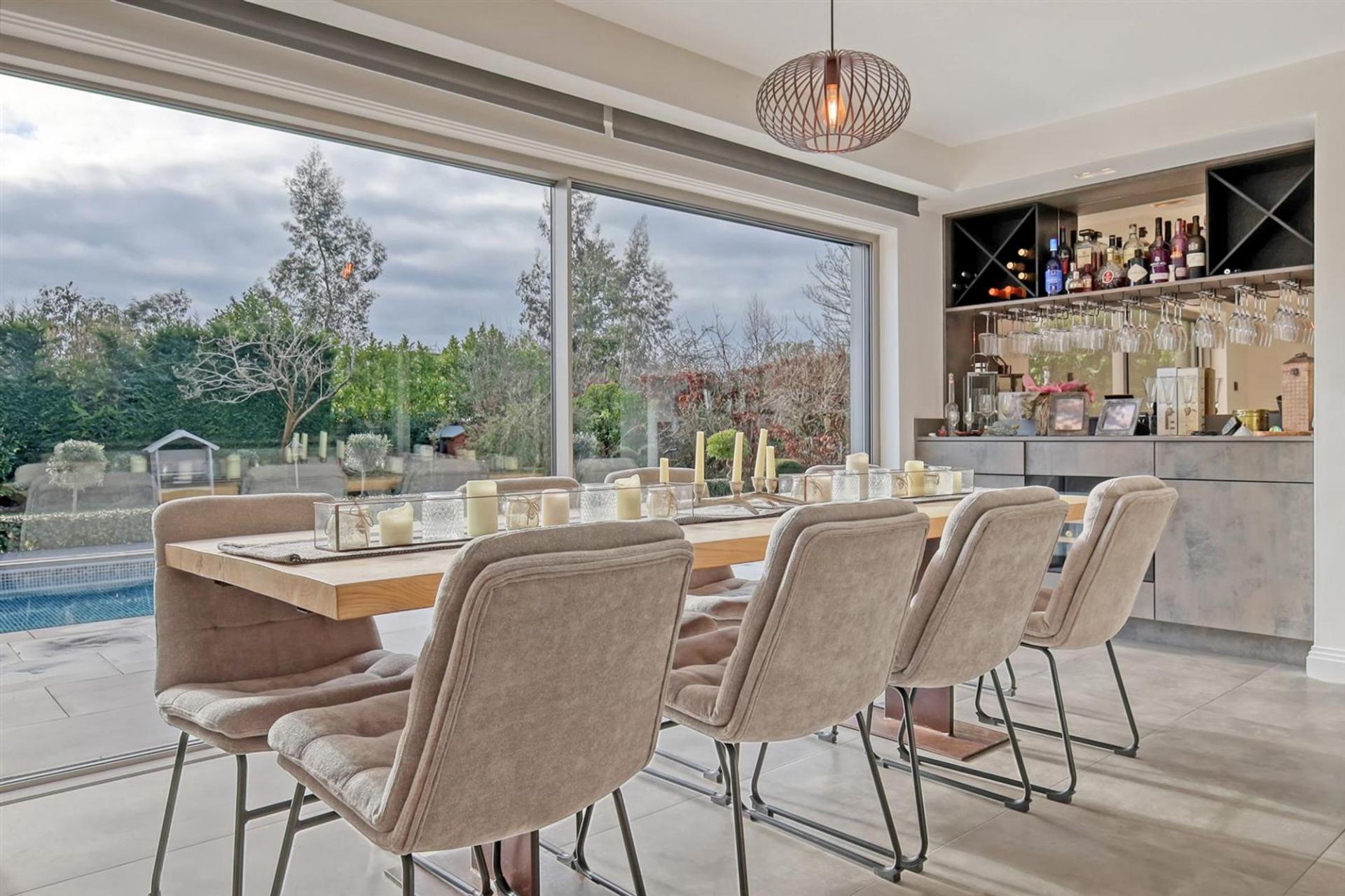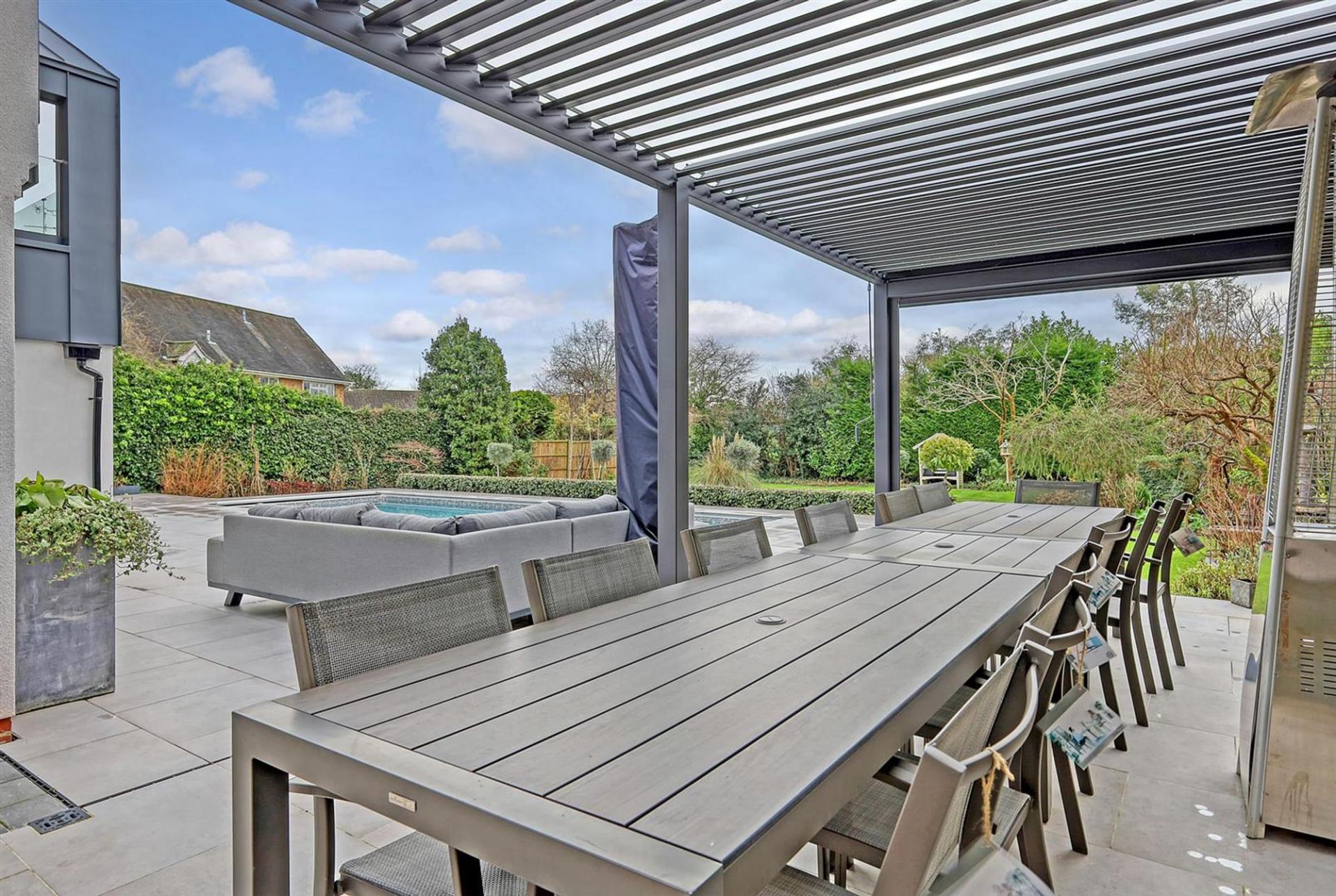 The beautifully landscaped garden is a true highlight of this property, offering a perfect setting for outdoor living and entertaining. Step out onto the large patio area, ideal for alfresco dining, which overlooks the outdoor swimming pool. A stylish pergola provides a shaded area for lounging, while the patio steps down to a beautifully manicured lawn surrounded by mature trees and shrubs, creating a private and tranquil garden retreat. Completing this magnificent home is a double garage with integral access, offering secure parking and additional storage space.