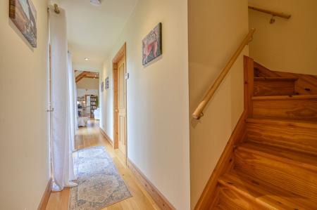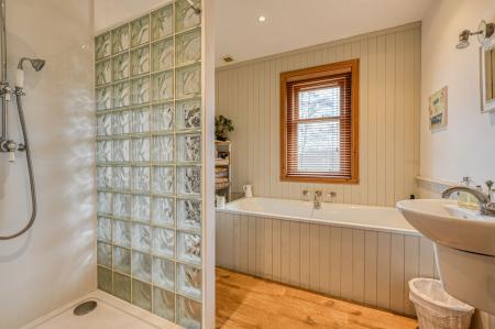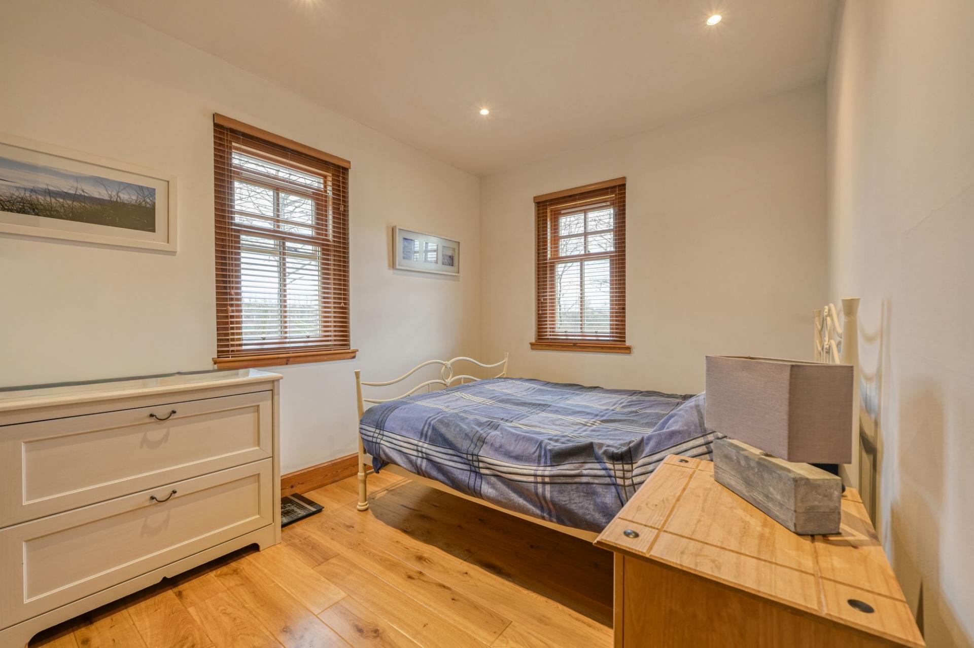 The principal bedroom is a serene and beautifully positioned retreat, complete with full-length windows that capture the breathtaking views. French doors lead directly out to the garden, allowing you to step outside and enjoy the fresh Highland air from the moment you wake. It is a truly special space. The main bathroom is thoughtfully designed and features both a bath and separate shower.