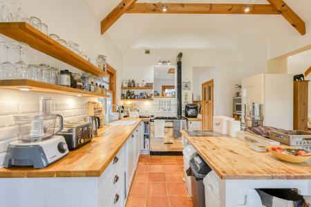 The spacious lounge is both welcoming and elegant - ideal for entertaining or simply unwinding. A wood-burning stove forms a warm and characterful focal point, perfect for cosy evenings as the countryside settles into dusk outside.