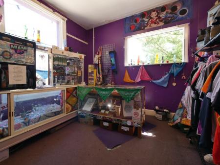 SHOP AREA Carpeted flooring, windows to front and side aspect, walk way through to counter & till area, window to side aspect, storage heater, door to rear lobby and stairs down to lower level basement.
