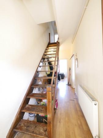 STAIRS Open tred stairs leading to second floor landing, loft hatch, doors to bedrooms and bathroom.