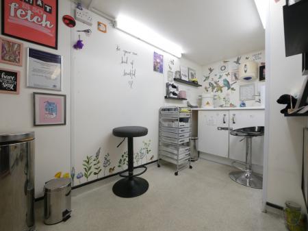 REAR LOBBY G/F LEVEL Doorway from shop into hallway, stairs to first floor, side door to garden, hallway leads to Kitchenette with base units, stainless steel sink, Triton water heater, double glazed window to side aspect, door to cloakroom with low level WC, non slip flooring, double glazed window to side aspect.