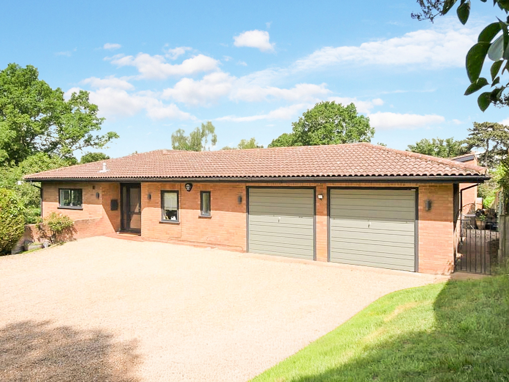 An architecturally striking and beautifully individual five bedroom detached residence. This substantial family home occupies an exclusive position within a prestigious cul-de-sac in the sought-after South West of Ipswich. Approached via an impressive winding driveway and set within magnificent grounds approaching 1.75 acres (STS), complete with private woodland and enchanting views across the town, the property offers an exceptional sense of privacy, space, and refinement.