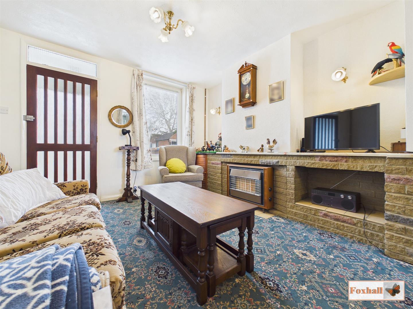 Porch - Front aspect UPVC frosted double glazed entrance door, side aspect double glazed window, carpet flooring and the door into the lounge.