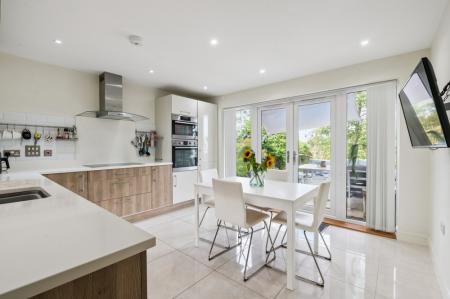 Inside, the home is immaculately maintained and thoughtfully designed to suit modern family living. The spacious entrance hall sets the tone with an abundance of natural light and leads seamlessly to the principal living areas. The property features two stylish reception rooms, offering flexibility for entertaining or quiet relaxation. The front aspect snug/dining room can easily be adapted to a sixth bedroom or home office, catering to growing or changing family needs.