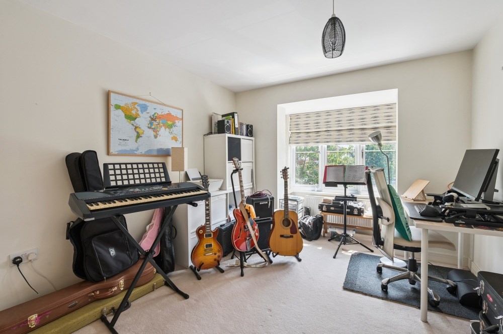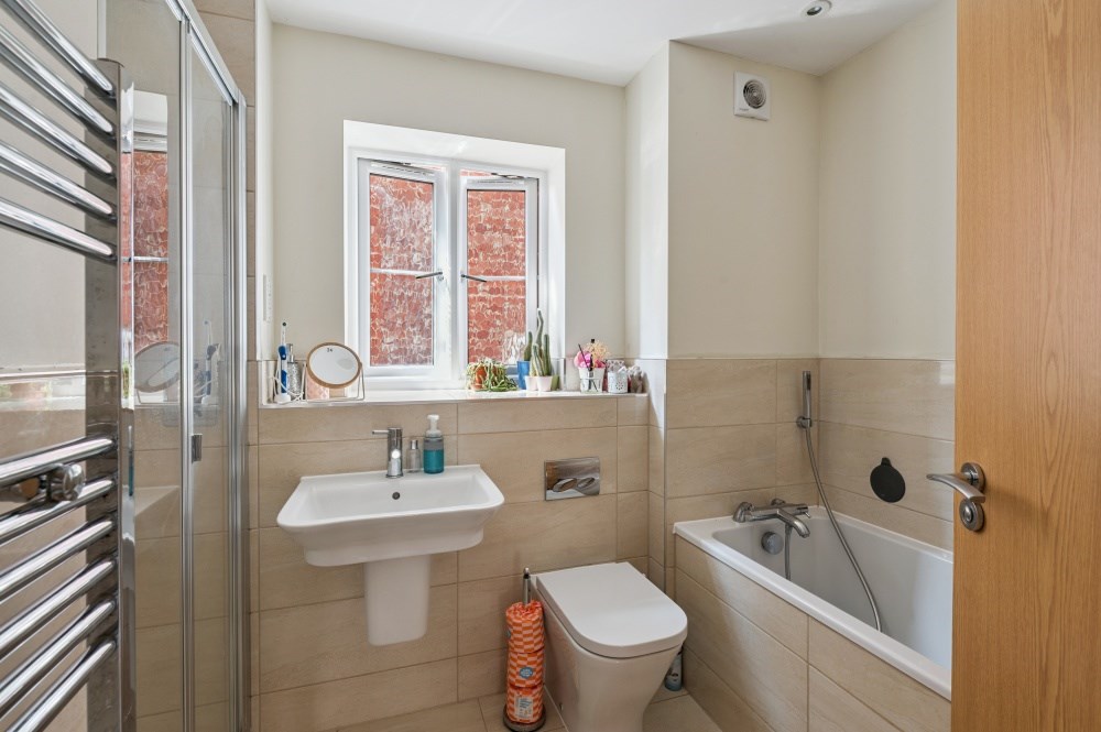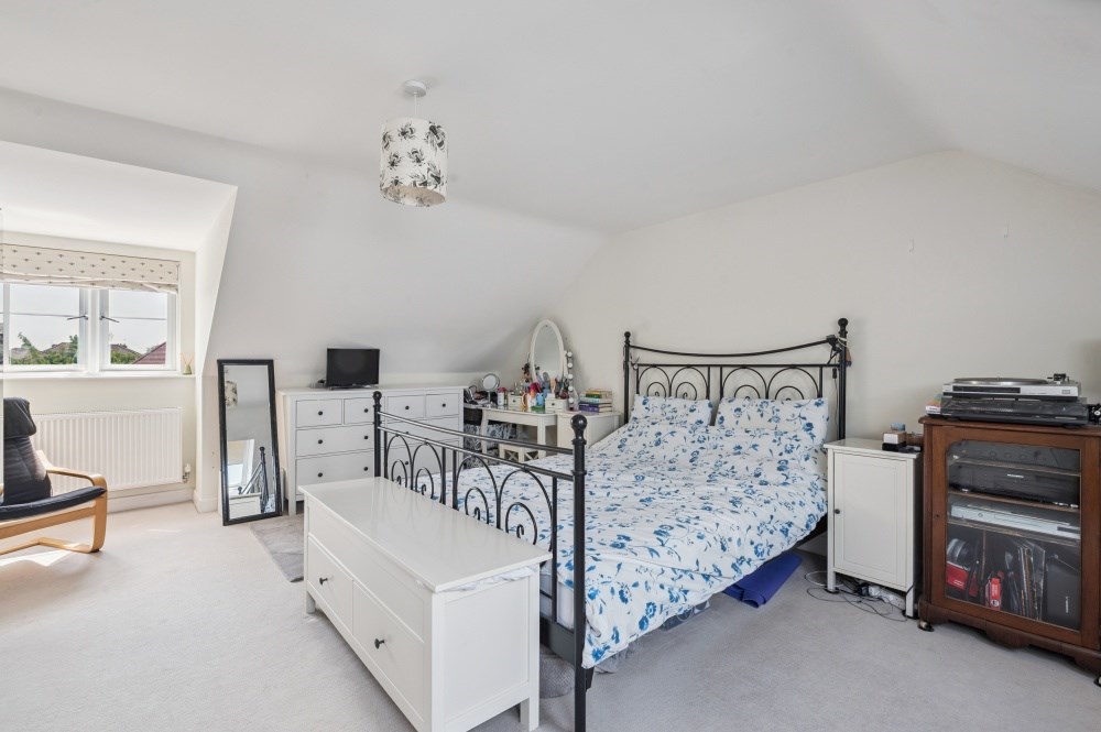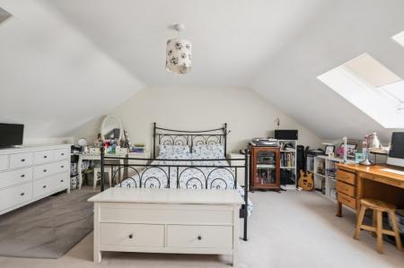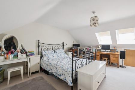 The top floor is home to the impressive principal suite, measuring over 20ft. This serene space features Velux windows, ample eaves storage, a private dressing area with built-in wardrobes, and a sleek en-suite shower room—ideal for unwinding in peace and privacy.
