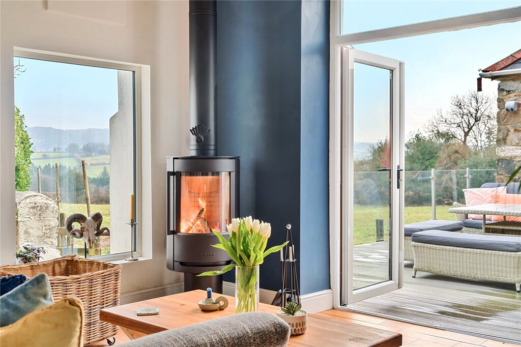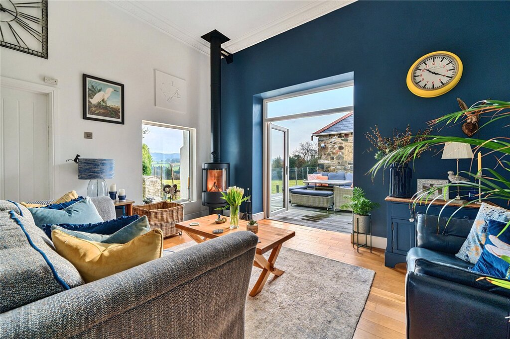 The heart of the home is an exceptionally stylish, light-filled, open plan kitchen with dining area and snug, featuring vaulted ceilings and French doors open onto the decking area, seamlessly bringing the stunning moorland views into the space and a contemporary wood burner serves as a beautiful focal point in the snug area of this family room. This high-end feature adds warmth and character, creating an inviting atmosphere while perfectly complementing the room's modern design. The space blends practicality and sophistication, providing the perfect setting for both family living and entertaining. The impressive guest suite, accessed through a beautiful period archway, complete with a generous dressing room, luxurious ensuite, and panoramic views over the moor is well suited also for multigenerational living, offering a ground-floor bedroom and seamless access to the main living areas if a future purchaser wished to create a self-contained annex. The generous sitting room, complete with a wood burner, creates a cosy retreat, opening into a welcoming hallway, this versatile space lends itself perfectly as a music area, reading nook, or a productive home office area.