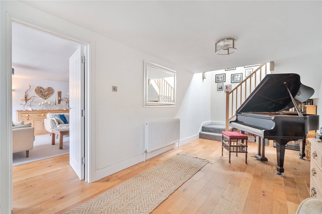 To the first floor, three impeccably presented double bedrooms, including a principal suite featuring a walk-in dressing room and en suite bathroom and a beautifully designed family bathroom complete this level of the home.