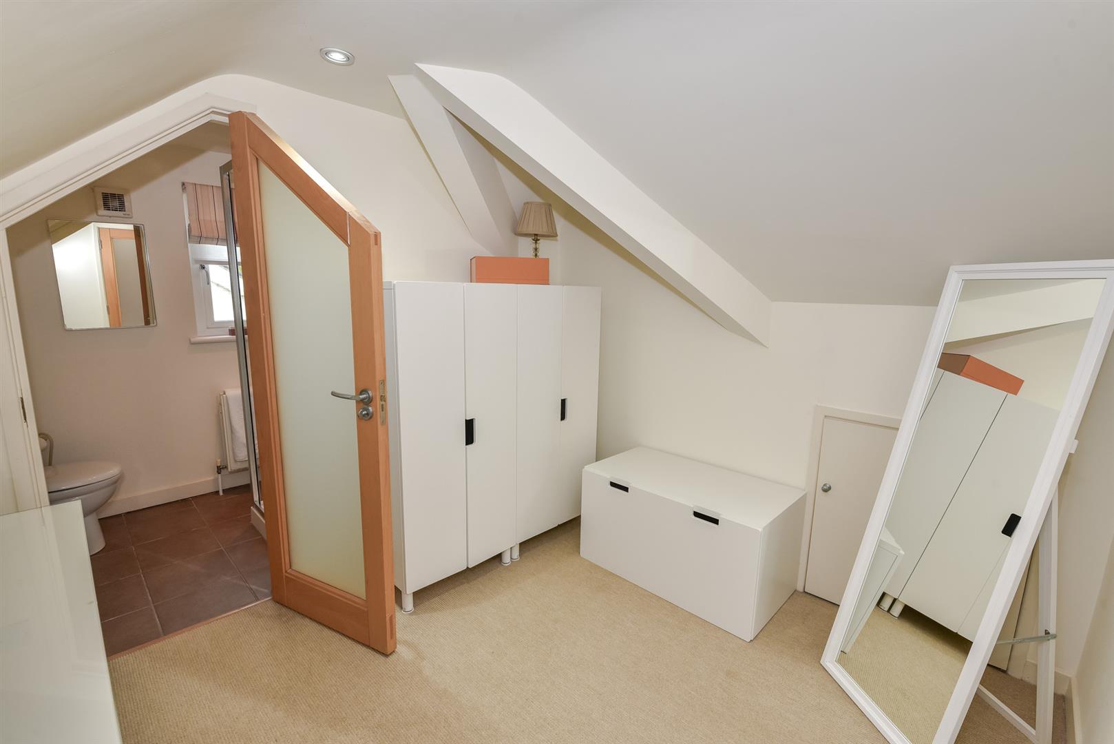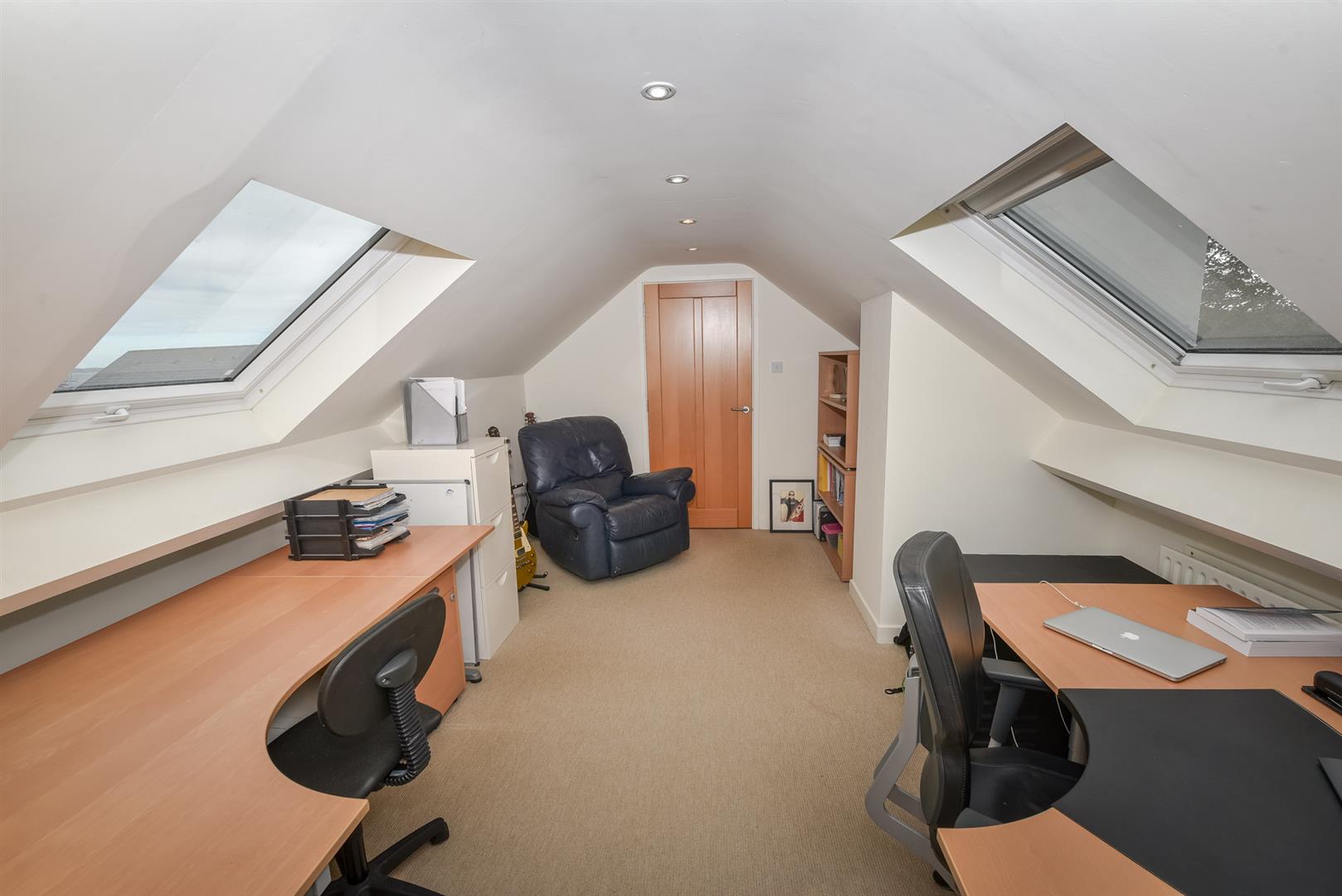 Bedroom (2): - (4.47m x 3.91m) - Velux window with fantastic views over Whiterock Bay, recessed spotlighting, open to dressing room with eaves storage, leading through to en suite.