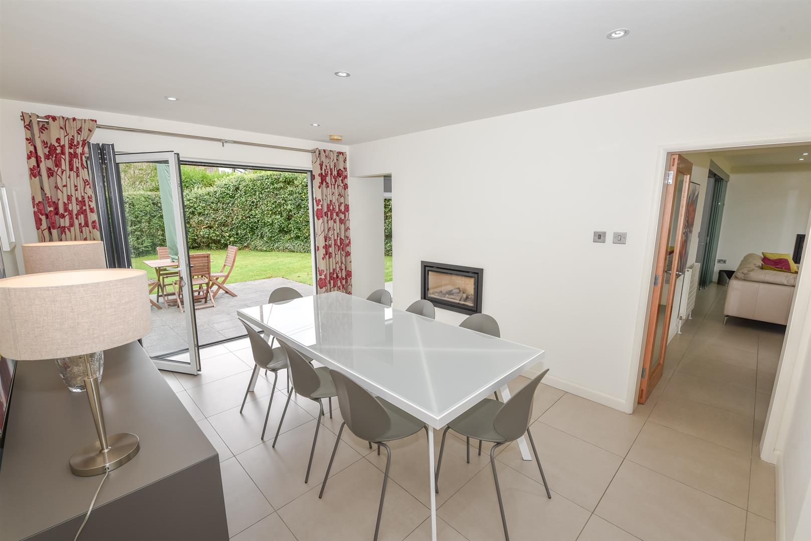 • Ample Reception Hall/Dining Area with Inset Gas Fire & Bi-Folding Doors Leading to Rear Gardens