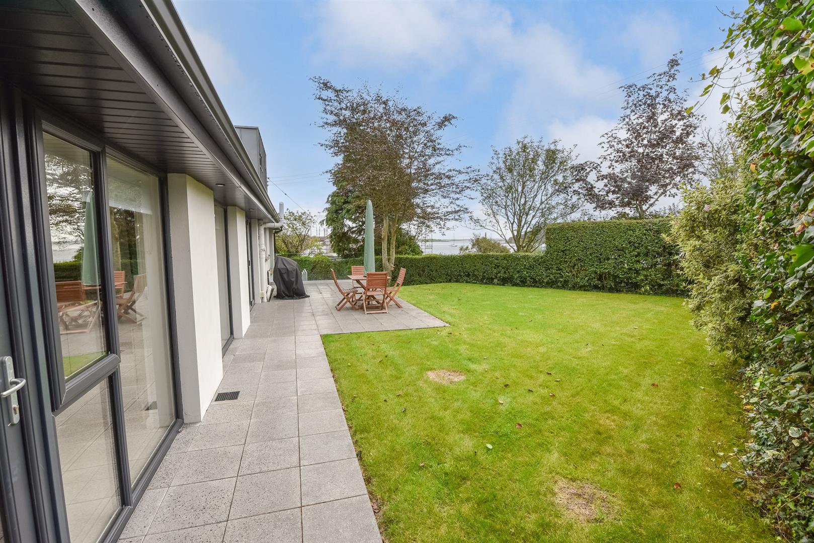 Side gardens with bin area. Rear gardens laid in lawns with mature hedging, paved patio ideal for outdoor entertaining, south facing garden with spectacular views over Whiterock Bay
