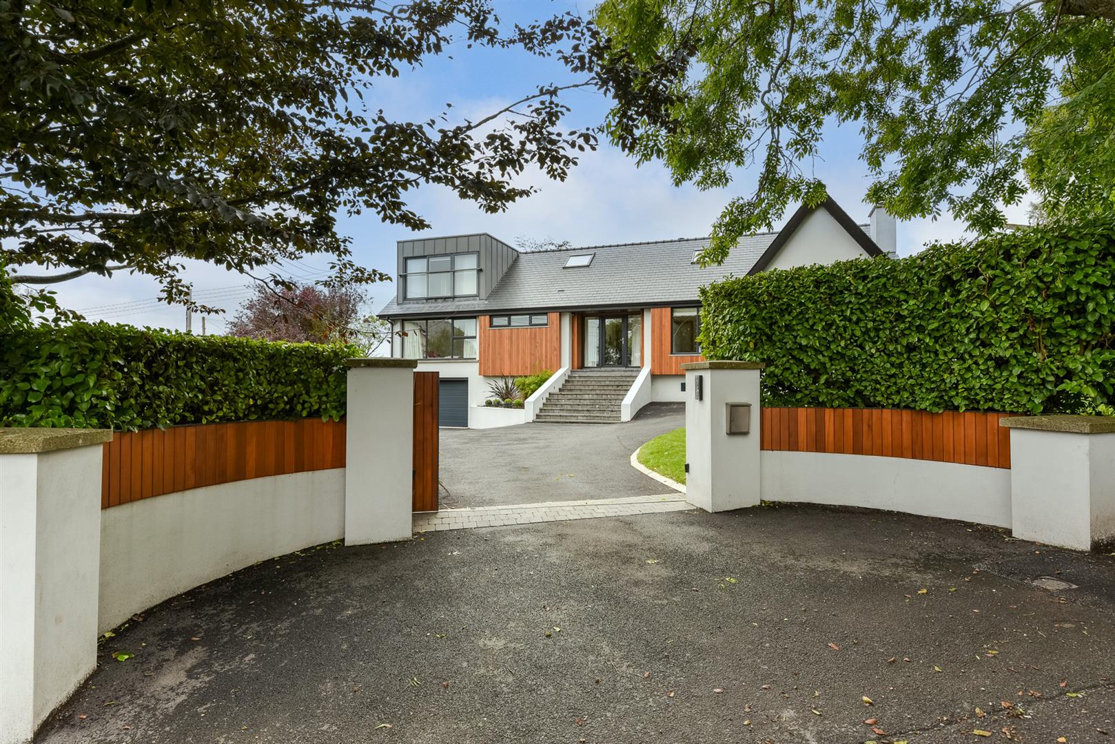 This stunning contemporary residence is set on an elevated 2-acre site. This property is finished to an exceptionally hi...