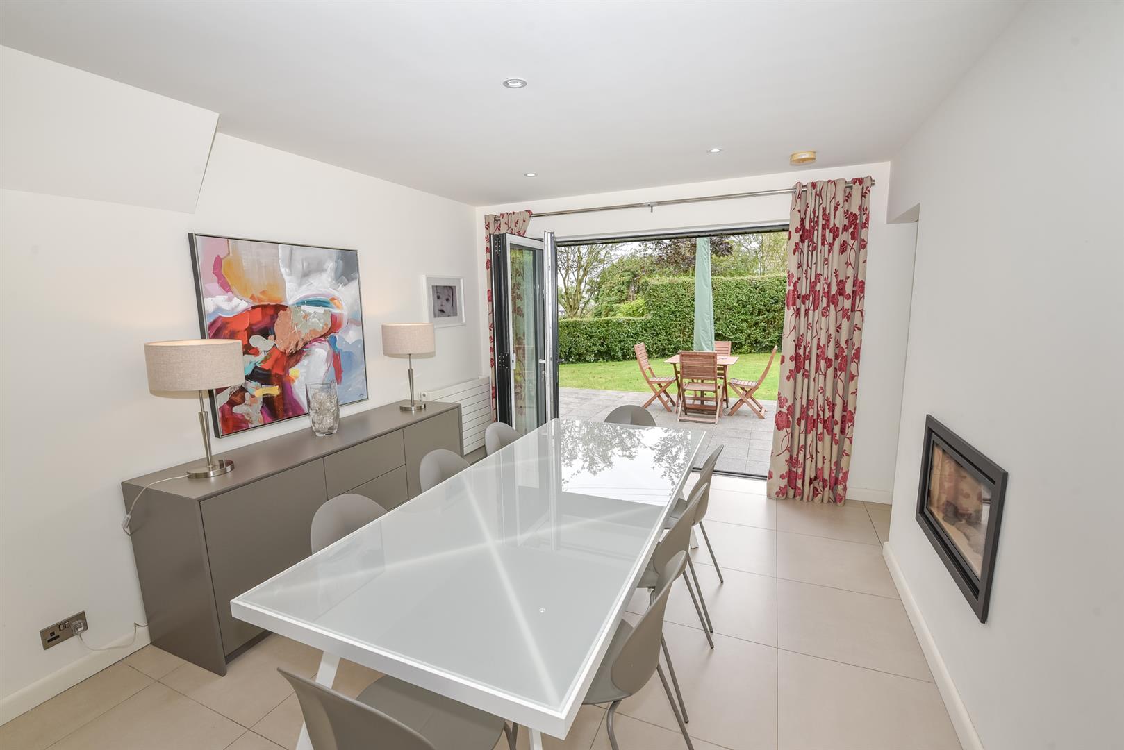 Open Plan Reception Hall / Dining Area - (4.44m x 3.28m) - Bi-folding doors leading through to rear gardens, open plan to kitchen with inset gas fire.