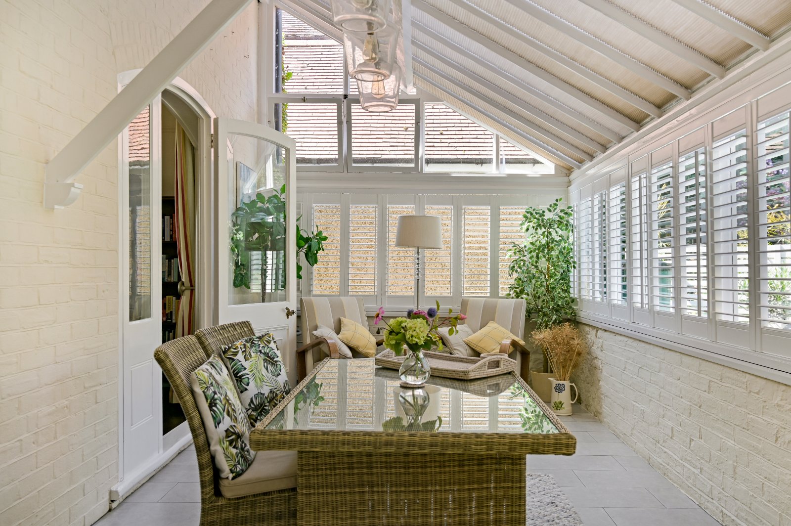 From the moment you step inside, the reception hall sets the tone, with its original tiled floor and sweeping staircase rising beneath a lofty panelled ceiling to a galleried landing above. Generously proportioned reception rooms radiate from here, including the elegant sitting room where an Esse wood-burning stove is set within the original surround. A glazed Edwardian door leads from the sitting room through to the conservatory. The Neptune designed kitchen forms the heart of the home, fitted with premium appliances including twin Neff ovens, an integrated microwave, induction hob, Siemens extractor, Franke boiling hot tap and integrated dishwasher. A large central island with statement pendant lighting anchors the space, while underfloor heating runs seamlessly through the kitchen, breakfast room, pantry, utility and cloakroom. From here, the kitchen flows into a wonderfully light conservatory, finished with plantation shutters and a newly tiled floor. Ideal for both relaxed entertaining and everyday living, a further glazed Edwardian door opens onto an expansive paved terrace and the secluded south-west facing garden.