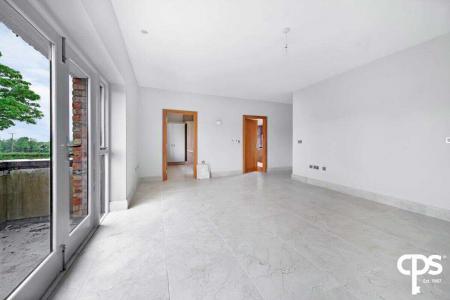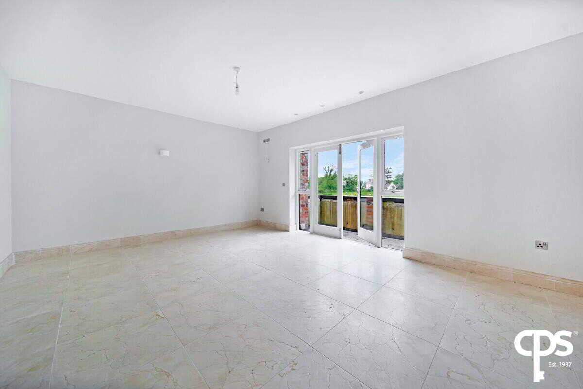 The large master bedroom has tiled flooring and skirting, spot and drop lighting, and double-glazed patio doors leading to a balcony overlooking the front of the property. The bedroom benefits from a dressing room and an ensuite bathroom room.