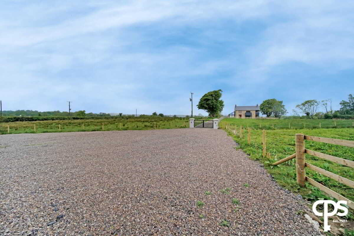 The entire site is situated on circa 1.9 Acres with a gravel area off the main road before access to a secure private driveway via electronic gates with decorative concrete pillars. There is a fenced boundary featuring a gravel driveway and cobble stone patio surrounding the perimeter of the dwelling. To the rear and side there is an enclosed patio area with fencing and feature cobble stones. To the front and left side of the dwelling; there is a large parcel of land circa 1.2 Acres. The property offers ample parking for multiple vehicles and provides views over the surrounding picturesque countryside.