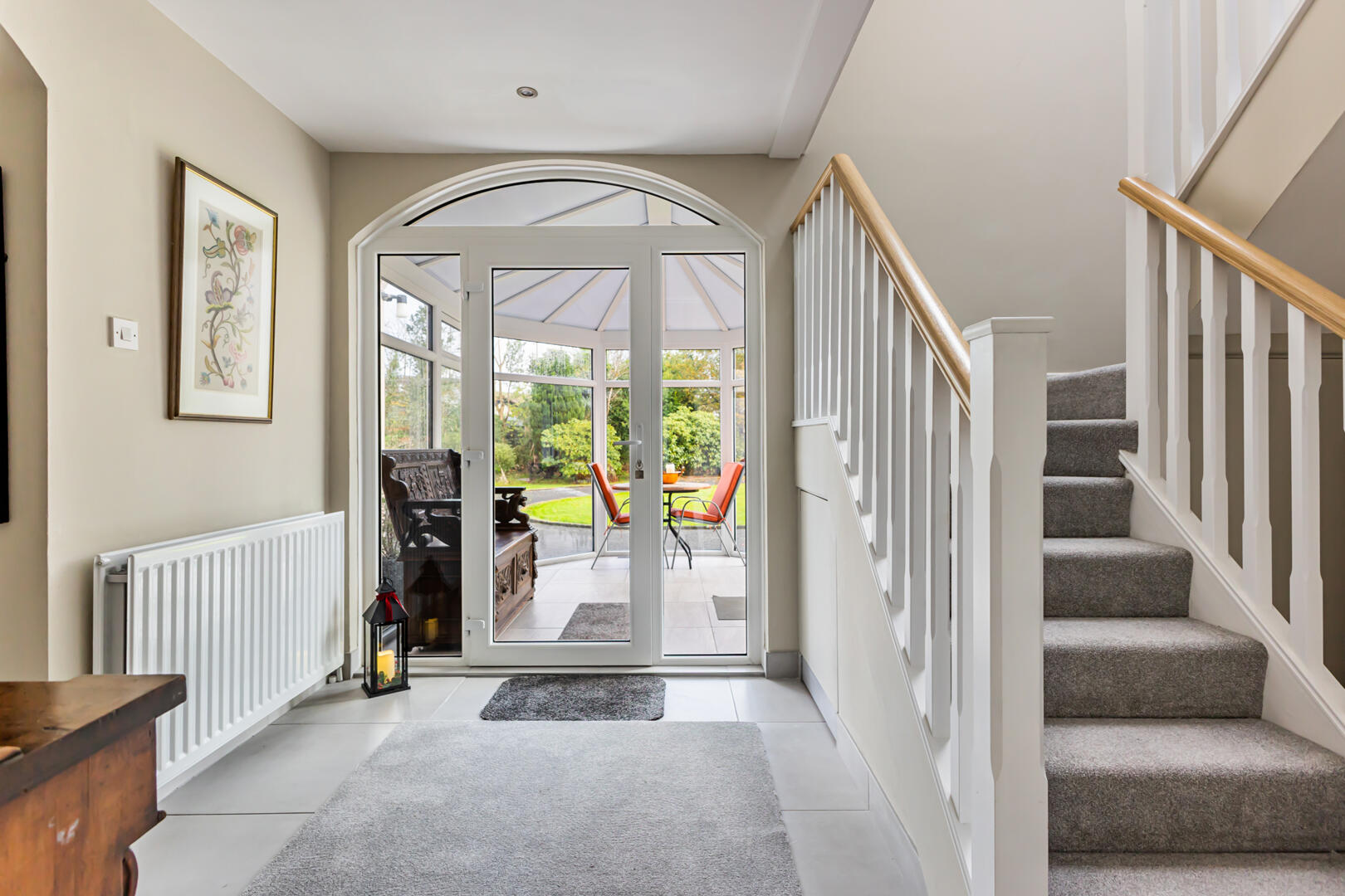 Front Porch - 2.44m x 2.39m (8' x 7'10") - with courtesy light and UPVC front door overlooking the mature front garden, porcelain tiled floor, double floor socket.
