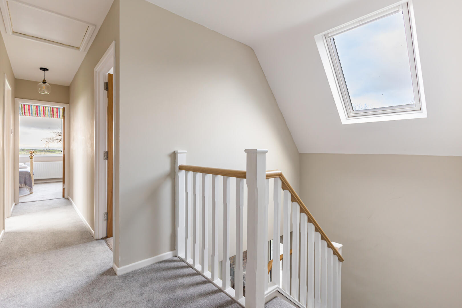 Stairs To First Floor - carpet, Velux window to front