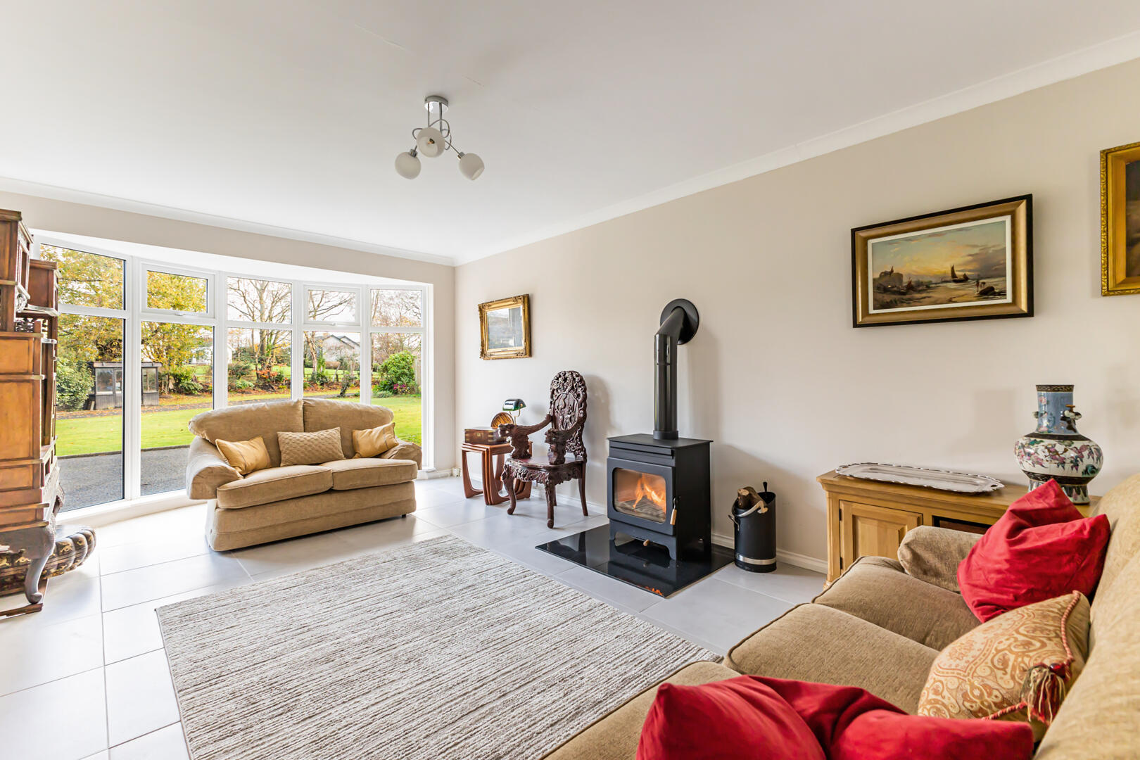 Family Lounge with Wood-Burning Stove and Bay Window