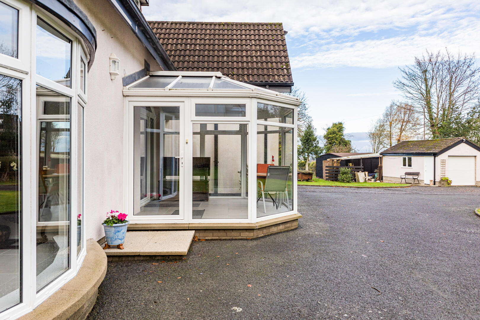 Front Porch, Tarmac Driveway with Electric Gates, Mature Gardens