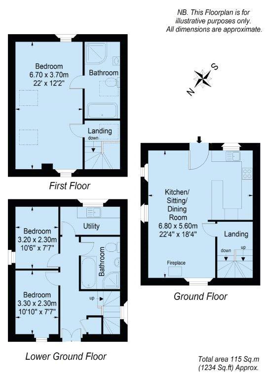 The ground floor is the heart of the property housing the triple aspect, open plan kitchen, dining, sitting room. There is oak flooring in the living/dining area and oak doors and skirting throughout. The kitchen has plenty of modern fitted floor and wall units, there’s ample space for a dining table and chairs and the cosy sitting area is enhanced by a log burner set on a slate hearth.