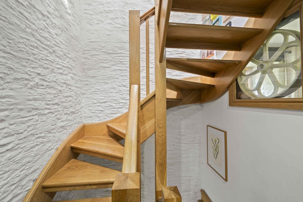 The hallway on the lower ground floor has a built-in storage cupboard beside the beautifully hand-crafted oak staircase. On this level there are two double bedrooms, a utility room and a well-appointed fully tiled bathroom with separate shower cubicle plus glazed patio doors giving access to the side of the property.