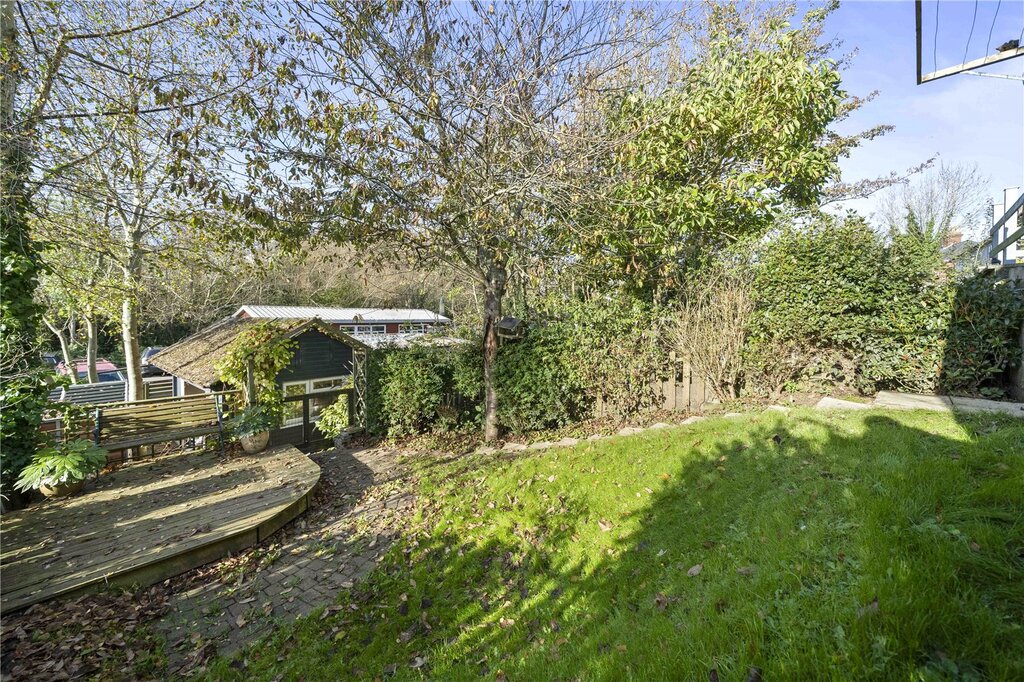 The tiered rear garden is a real gem, there is a large patio and timber decked seating area, ideal for entertaining or simply relaxing. From here steps take you down to the middle tier which is laid to lawn and has useful storage under the timber deck with a paved path taking you to a further seating area. The lower tier houses a large studio/workshop which has power connected, and there is an access gate out to the parking area where there are 3 spaces for the property.