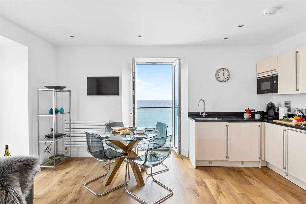 The apartment comprises entrance hall, shower room, 2 double bedrooms and the superb open plan kitchen/living/dining room. Most rooms have full length double doors with glass balustrades, allowing in plenty of light allowing you to take advantage of the fabulous views. Outside there is private parking alongside the building.